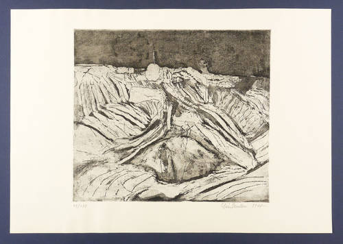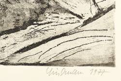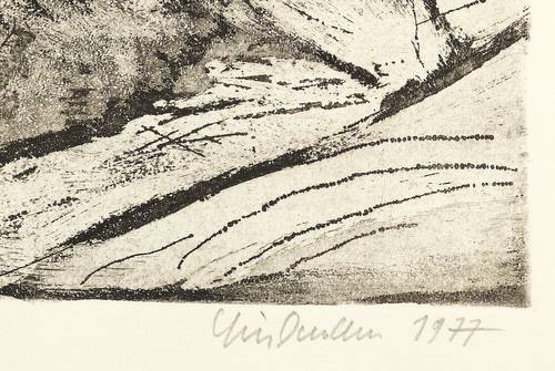 1977. Radierung / Aquatinta, in Schwarz, auf hellchamois Weißenborn. – Originale Künstlergrafik, von Rolf Lindemann. – Auflage Exemplar Nr. 71/100. – 31,7 x 36,1 cm (Darstellung / Platte), 41 x 59 cm (Blatt).