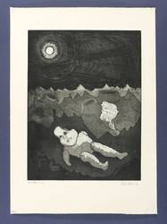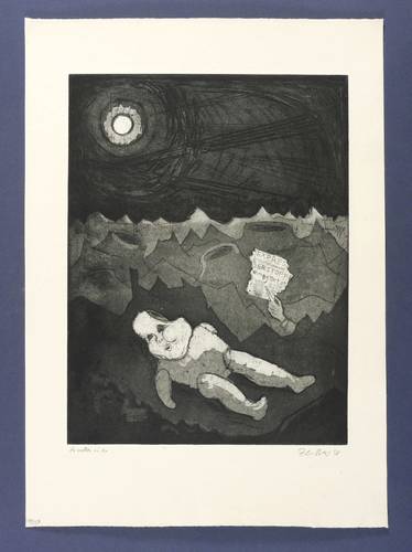 1958. Radierung / Aquatinta & Strichätzung, in Schwarz, auf gelblichem Karton. – Originale Künstlergrafik, von Herbert Sandberg. – Auflage Exemplar Nr. 24/50. – 39,1 x 29,7 cm (Darstellung / Platte), 54 x 38 cm (Blatt).