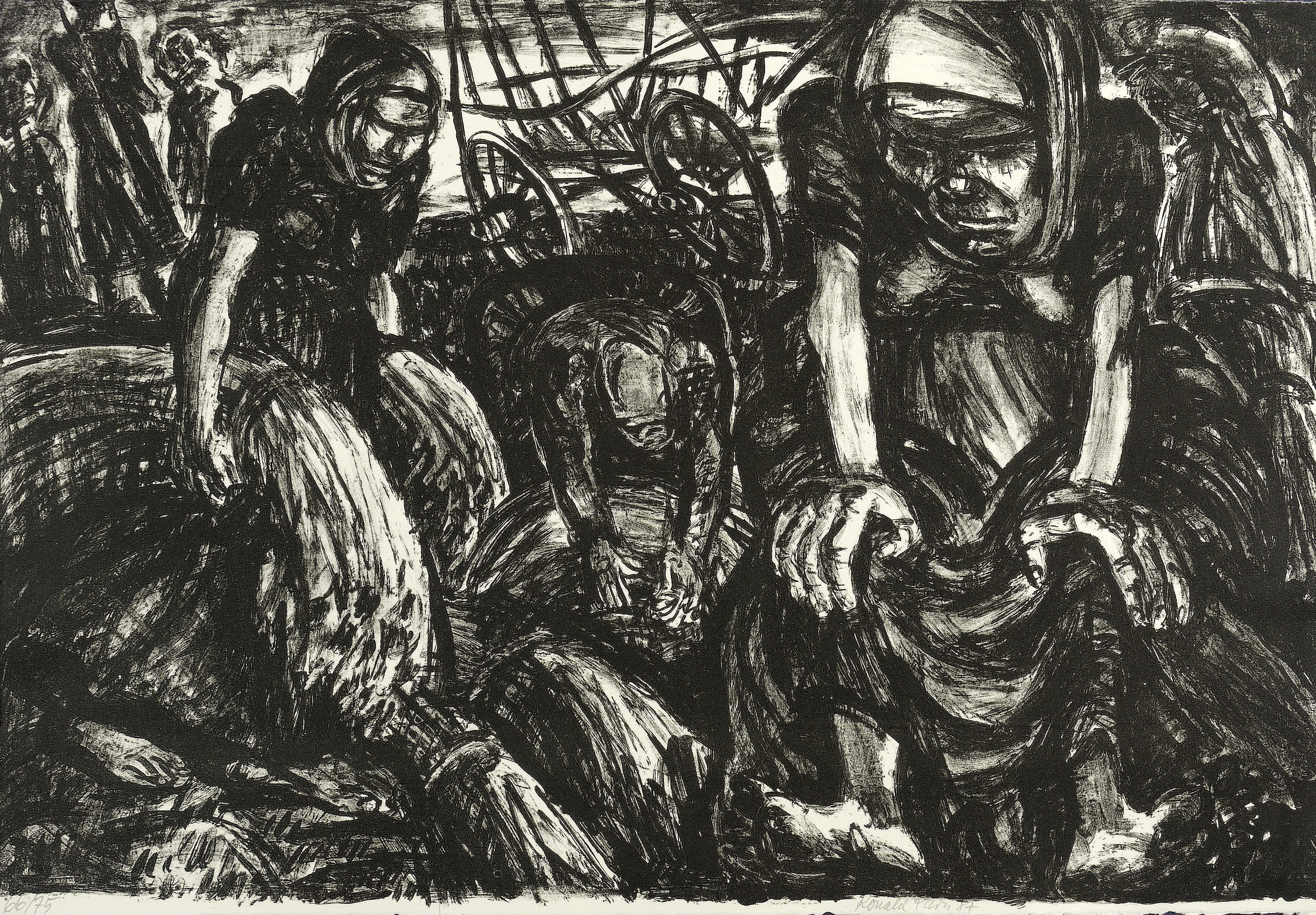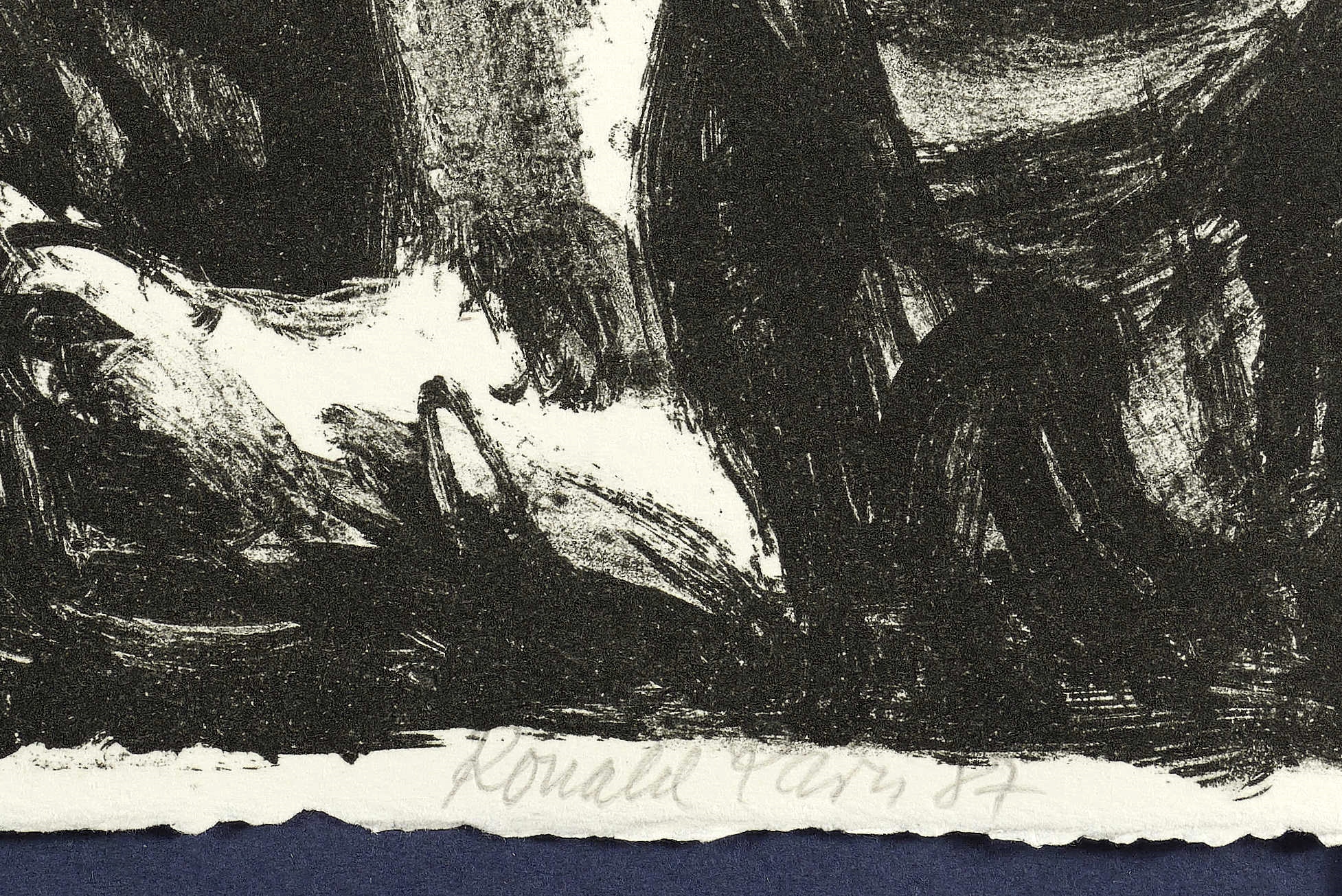 1987. Lithografie / Pinsellithografie, in Schwarz, auf schwerem Büttenkarton. – Von Ronald Paris. – Auflage Exemplar Nr. 66/75. – 37,6 x 55,2 cm (Darstellung), 38,3 x 55,2 cm (Blatt).