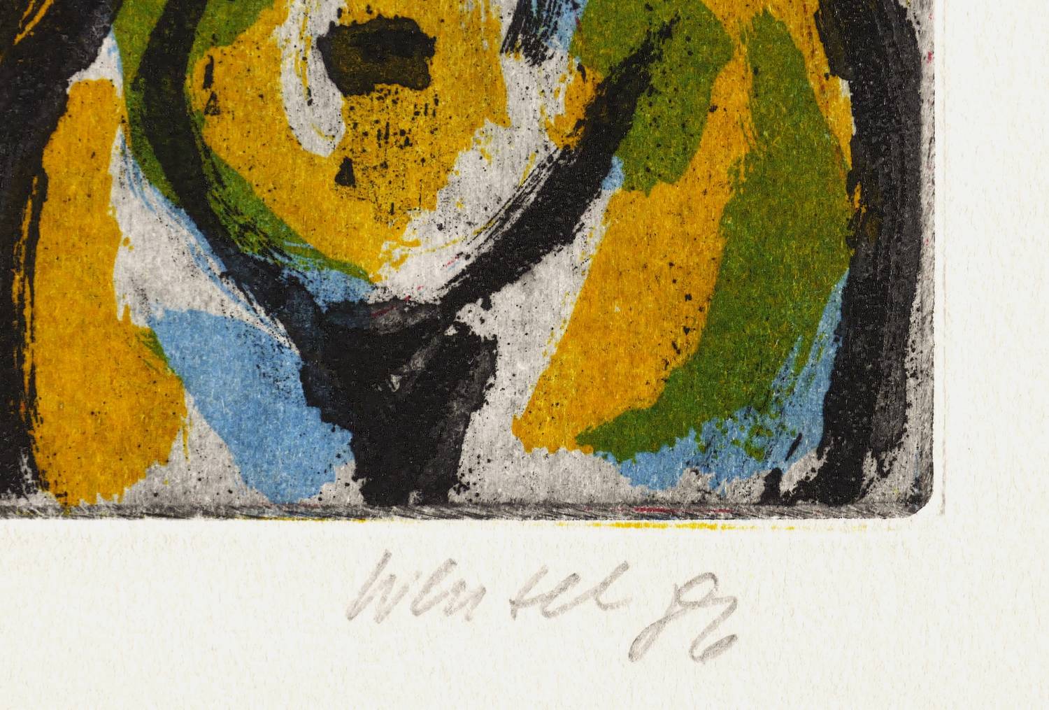 1986. Farbradierung / Reservage & Aquatinta, in 4 Farben, von 3 Platten, auf hellchamois Hahnemühle. – Originale Künstlergrafik, von Jürgen Wenzel. – Auflage Exemplar Nr. 5/20. – 35,6 x 50,5 cm (Darstellung / Platte), 40 x 54 cm (Blatt).