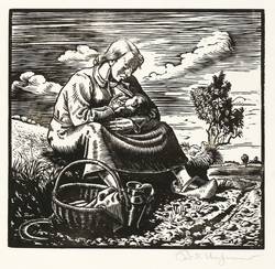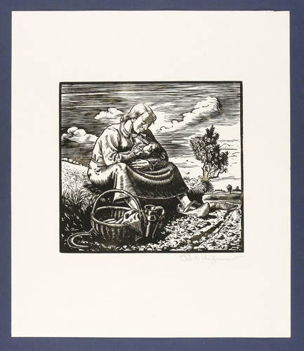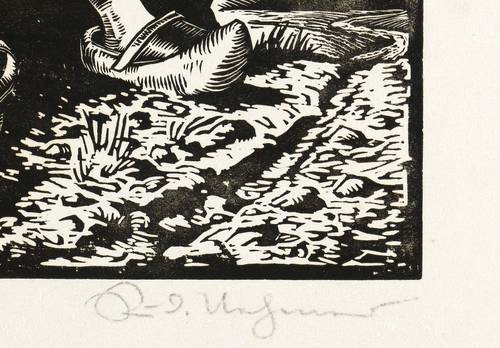 Um 1940. Holzschnitt, in Schwarz, auf weichem weißlichem Papier. – Originale Künstlergrafik, von Rudolf Nehmer. – 24,3 x 26,0 cm (Darstellung / Druckstock), 47 x 39 cm (Blatt).