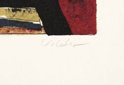 2005. Farblithografie / Kreide- & Pinsellithografie, in 4 Farben, auf gehämmertem hellgelbem Karton. – Originale Künstlergrafik, von Wolfgang Leber. – Auflage Exemplar Nr. 184/200. – 23,0 x 28,2 cm (Darstellung / Druckbild), 45 x 35 cm (Blatt).