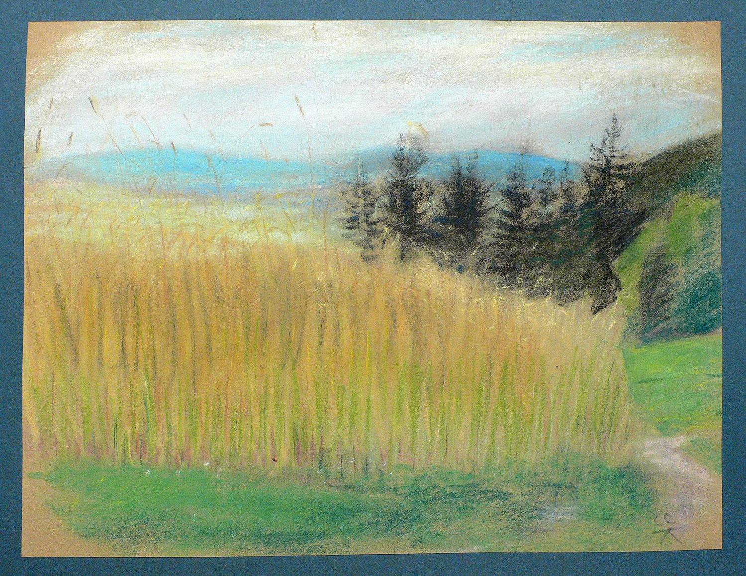 Um 1920. Zeichnung / Pastellkreide, auf chamoisfarbenem Papier. – Originale Künstlergrafik, von Karl Enderlein. – 23 x 30 cm (Darstellung / Einfassungslinie).