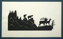 Hinze, Paul. – „Felslandschaft mit Hirschen und Bergziegen”.