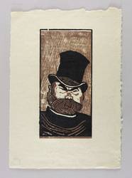 1947. Farbholzschnitt, in Braun & Schwarz, auf rauem gelbem Japan. – Originale Künstlergrafik, von Otto Pankok. – 30,8 x 15,0 cm (Darstellung / Druckstock), 45 x 32 cm (Blatt).