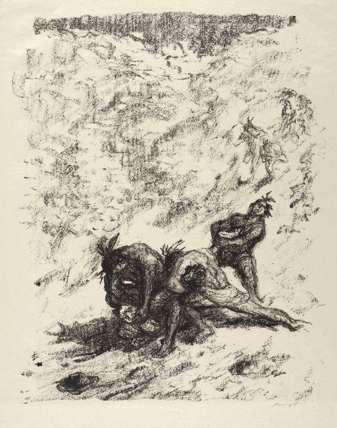 1908/1909. Lithografie / Kreidelithografie, in Schwarz, auf hartem gelbem Maschinenbütten. – Originale Künstlergrafik, von Max Slevogt. – Probedruck. – 33,0 x 26,8 cm (Darstellung / Druckbild), 44 x 33 cm (Blatt).
