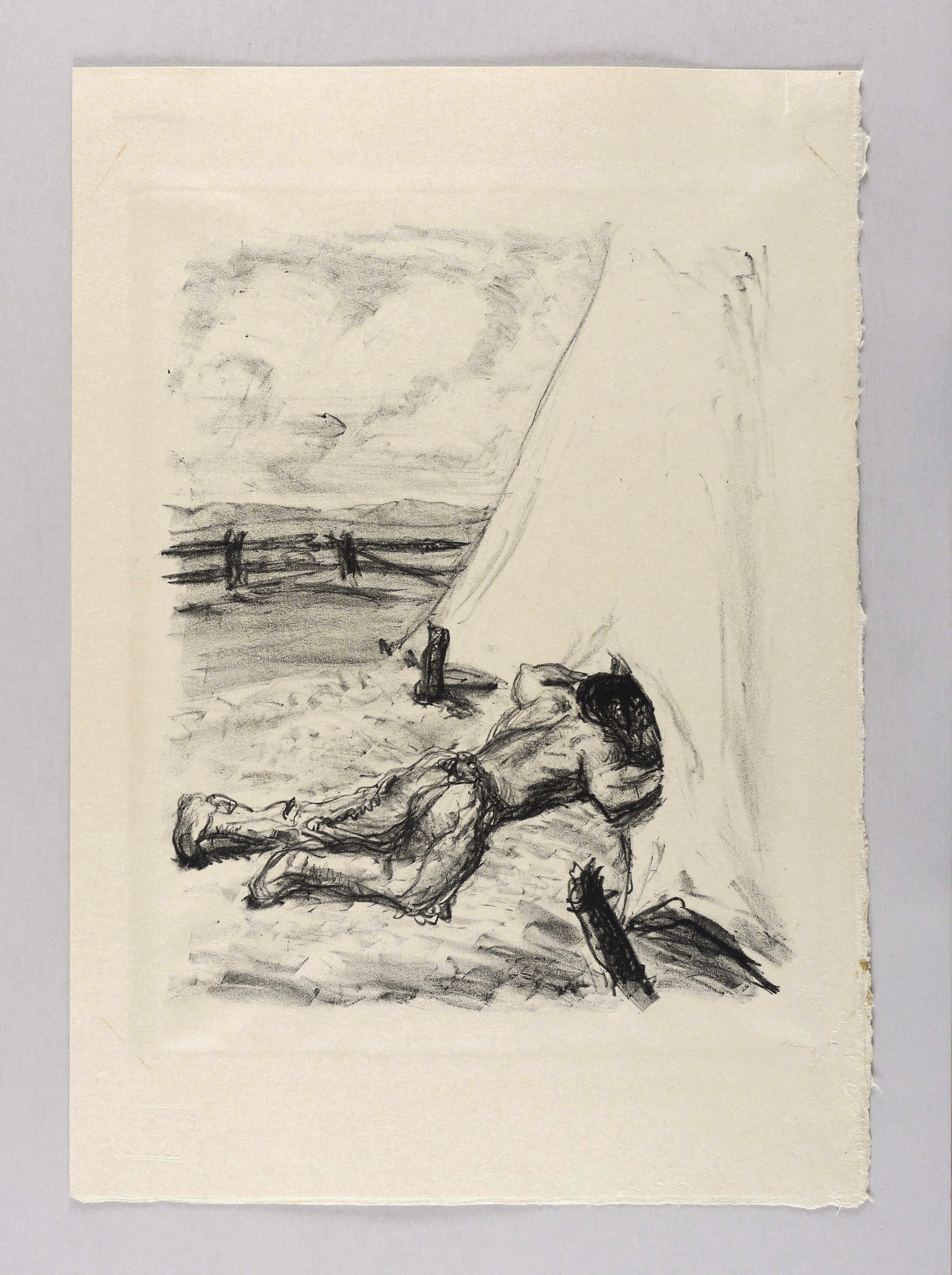 Sievers-Waldmann 344. – Aus: Max Slevogt, Lederstrumpf-Erzählungen (Berlin: Paul Cassirer 1908/1909). – Rechts unten in Bleistift signiert: ″Slevogt″. – Originalrandiges unbeschnittenes Exemplar. Leichte Lagerspuren, in den Ecken blasser Abklatsch von Klebestreifen eines ehemaligen Passepartouts. Mäßig guter Zustand.