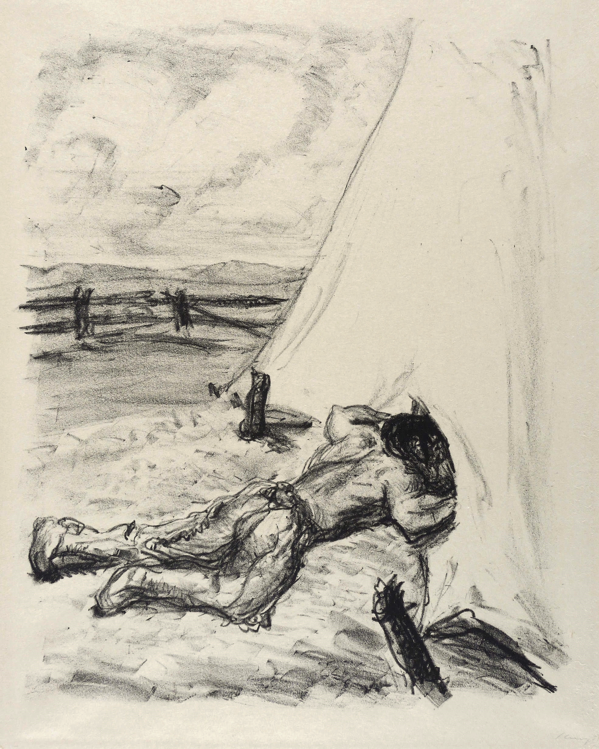 1910. Lithografie / Kreidelithografie, in Schwarz, auf festem gelbem Japan. – Originale Künstlergrafik, von Max Slevogt. – 33,3 x 27,0 cm (Darstellung / Druckbild), 48 x 34 cm (Blatt).