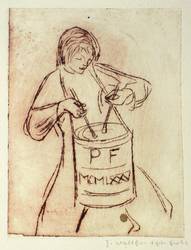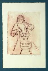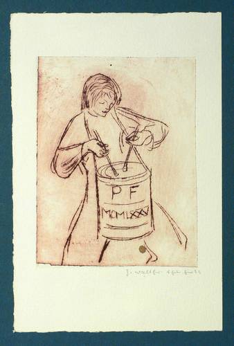 1974. Radierung / Kaltnadel, in Rotbraun, auf hellgelbem Velin. – Originale Künstlergrafik, von Jutta Walther-Schönherr. – 12,4 x 9,4 cm (Darstellung / Platte), 19 x 13 cm (Blatt).