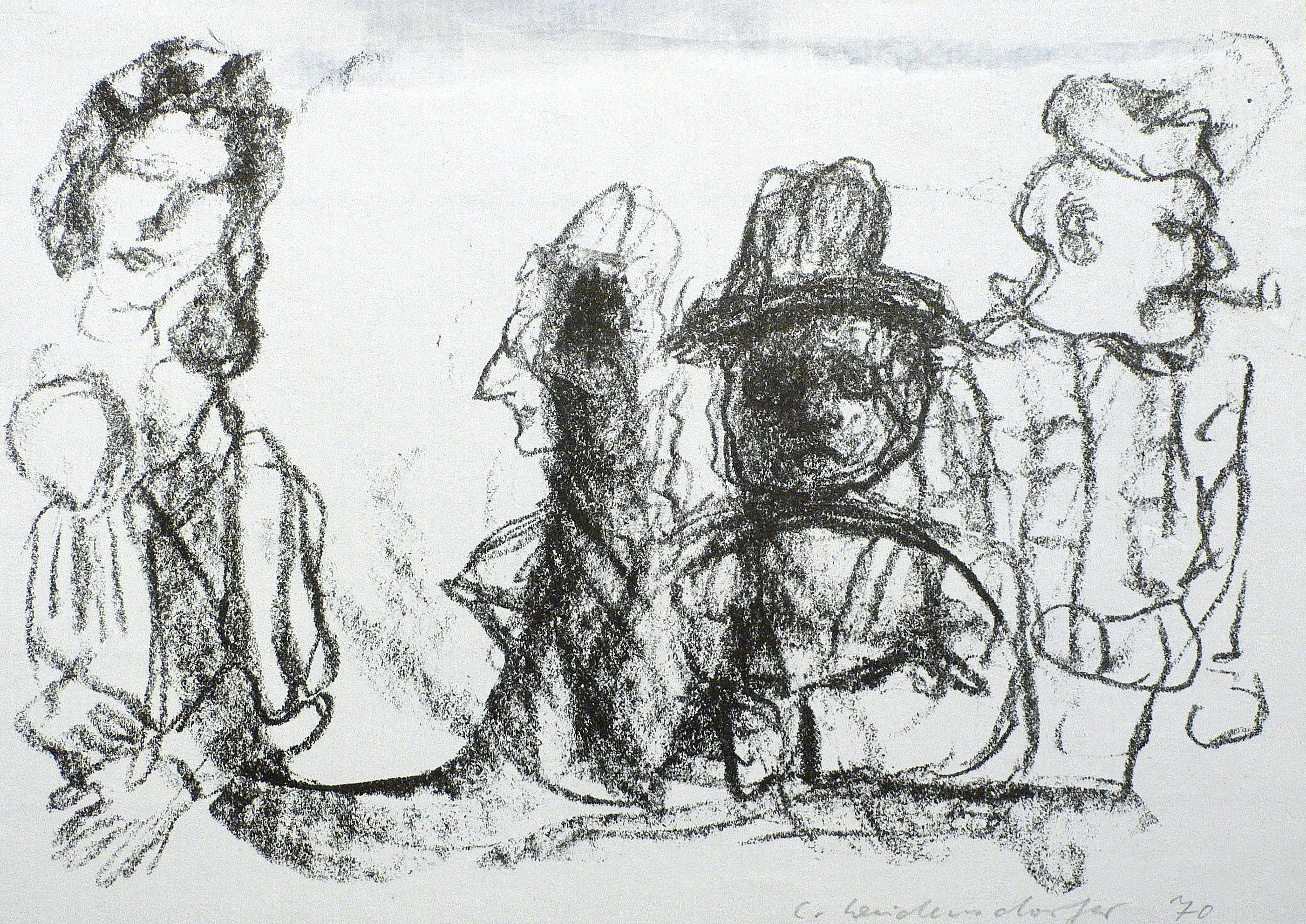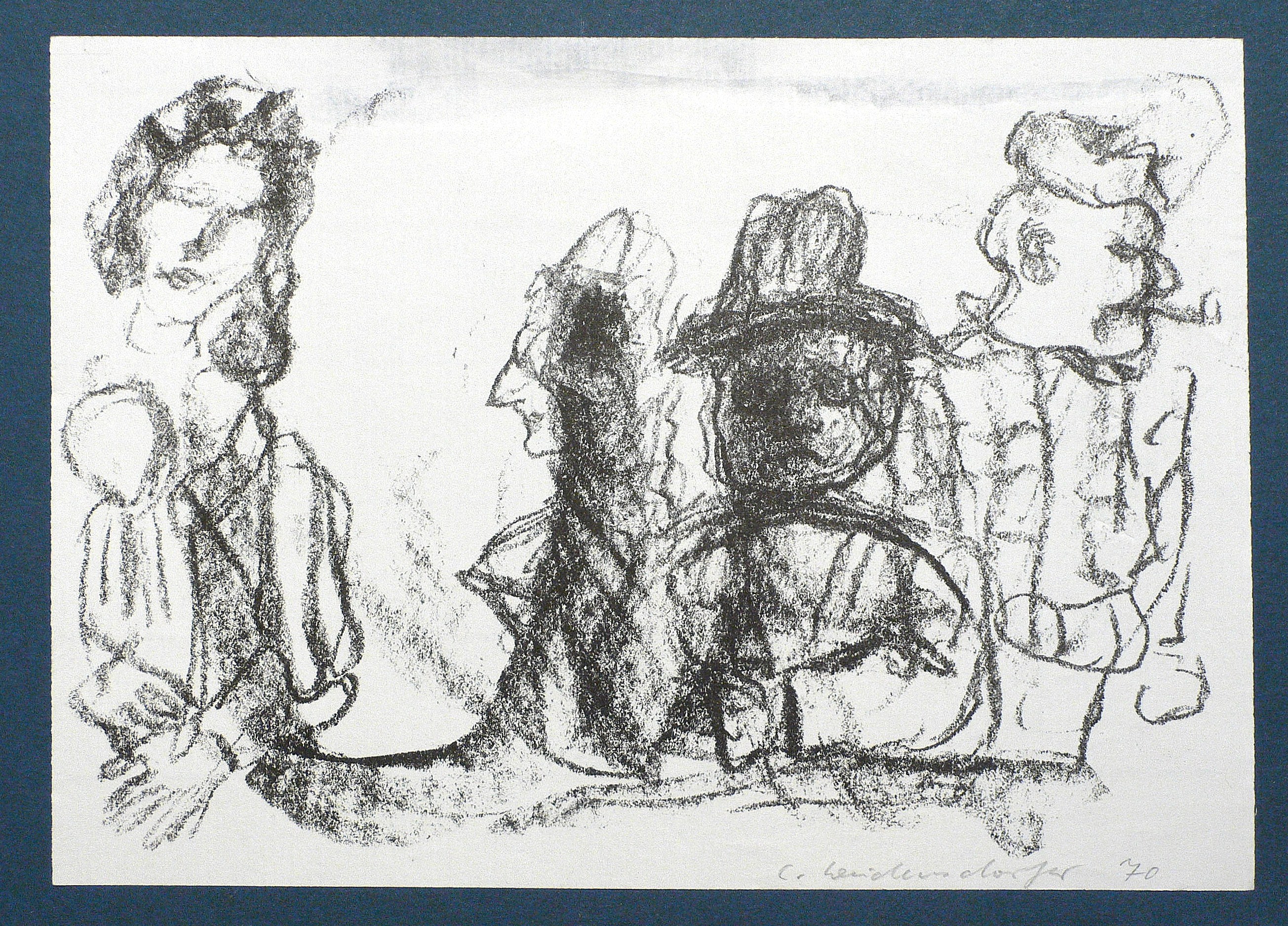 1970. Lithografie / Kreidelithografie, in Schwarz, auf hellchamois Velin. – Originale Künstlergrafik, von Claus Weidensdorfer. – 13,5 x 20,0 cm (Darstellung / Druckbild), 15 x 21 cm (Blatt).