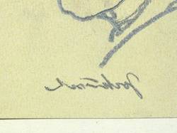 Unterhalb der Darstellung spiegelverkehrt (!) signiert. – Auf Trägerkarton montiert. Oberer Blattrand unsauber abgerissen. Insgesamt mäßig gut erhalten.