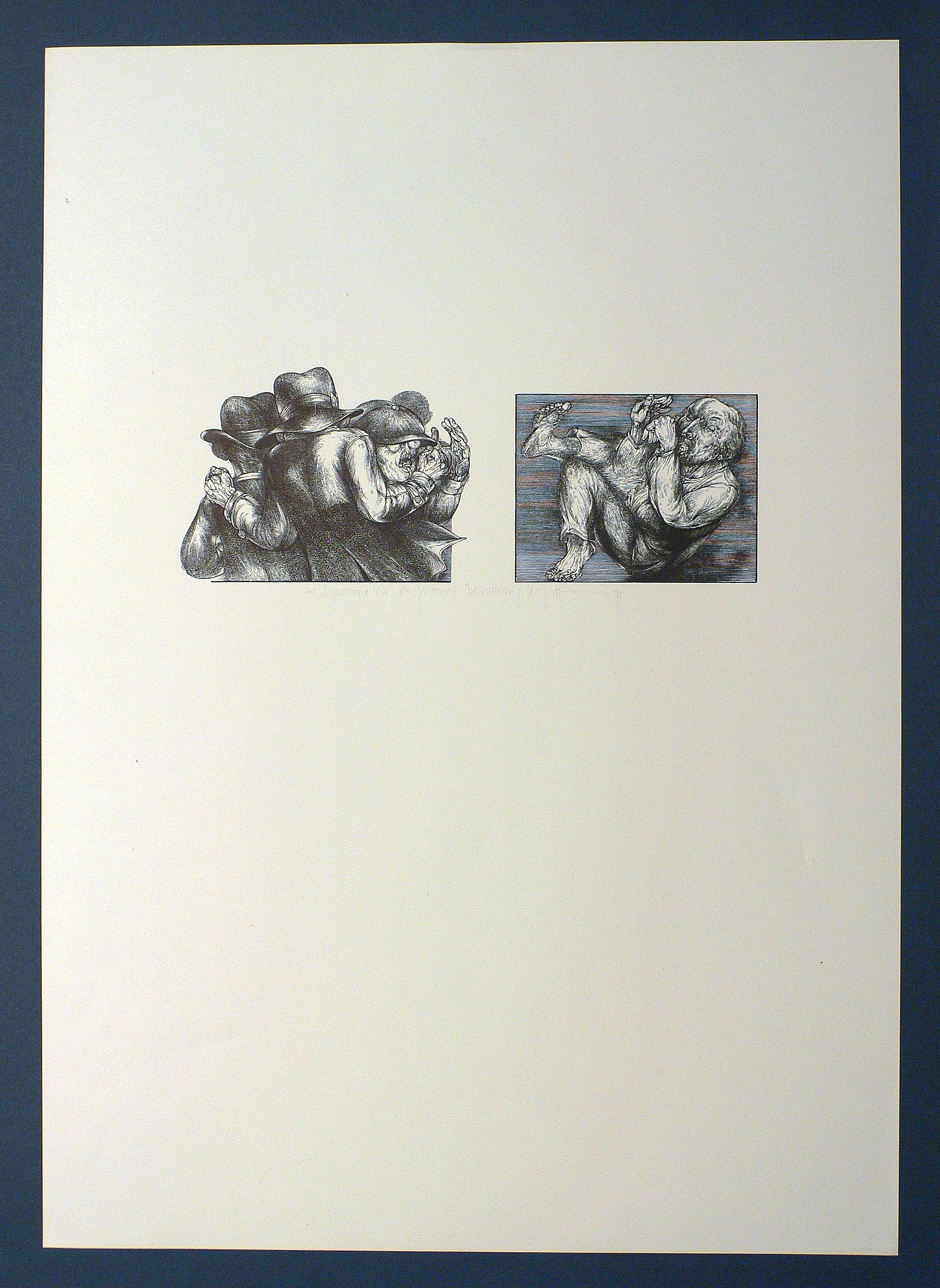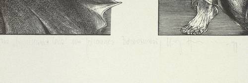 1977. Holzschnitt, in Schwarz, auf weißem Velin. – Originale Künstlergrafik, von . – 8,5 x 23 cm (Darstellung / Druckstock), 48 x 34 cm (Blatt).