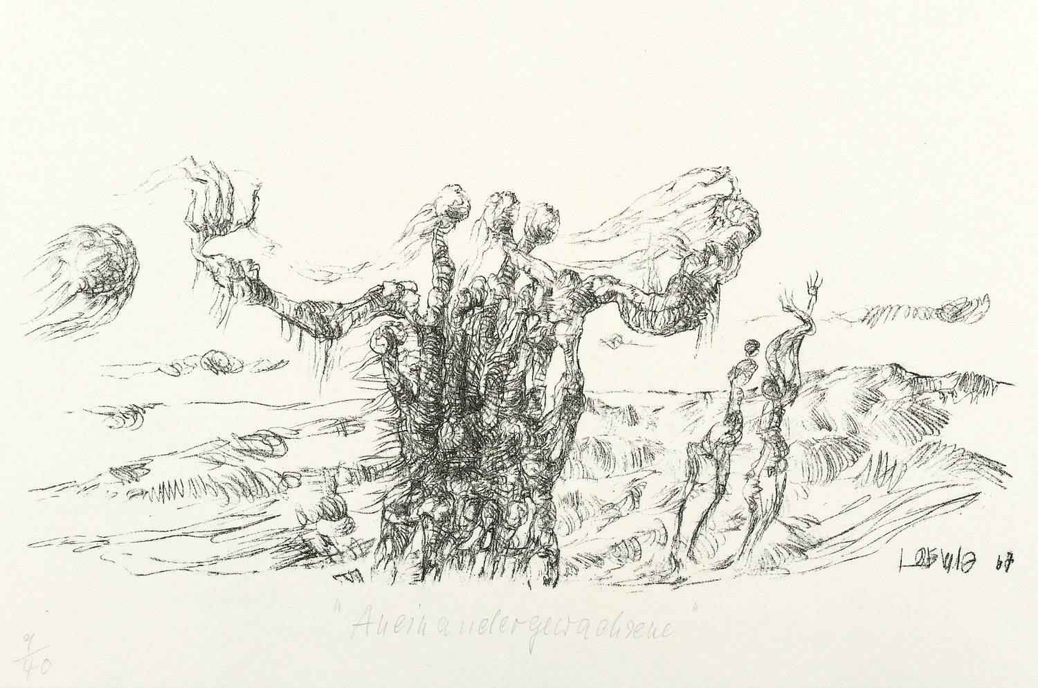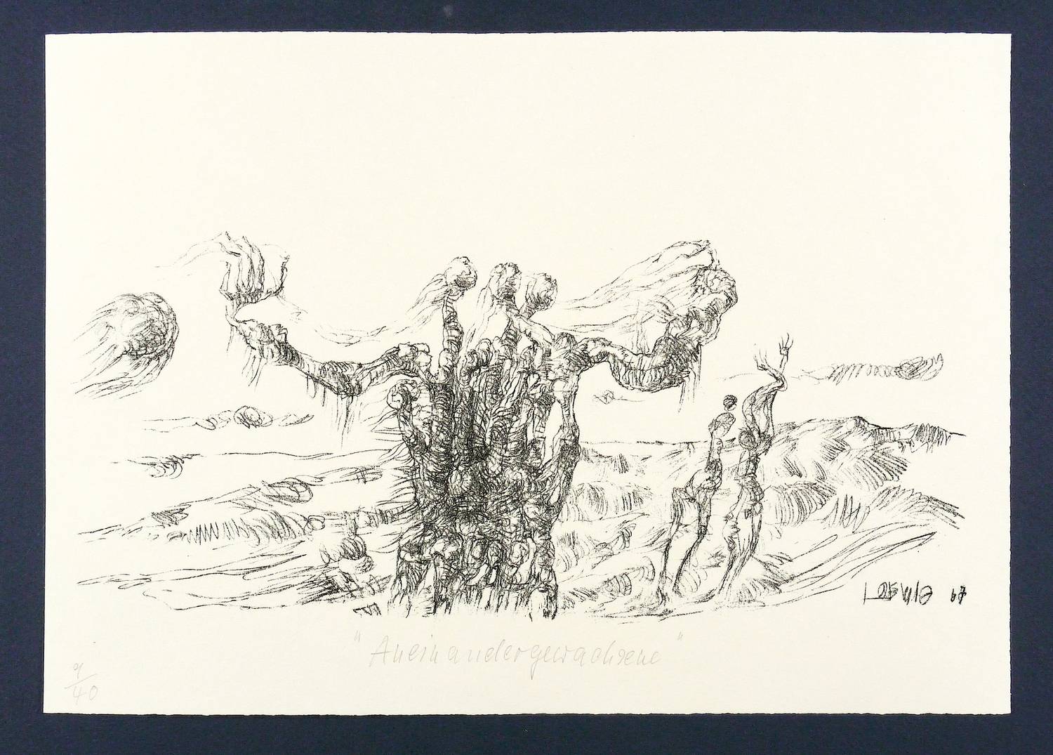 1967. Lithografie / Kreidelithografie, in Schwarz, auf hellchamois Velin. – Originale Künstlergrafik, von Roger Loewig. – Auflage Exemplar 9/40. – 15,0 x 27,5 cm (Darstellung / Druckbild), 21 x 30 cm (Blatt).