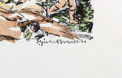 1915. Lithografie / Kreidelithografie, in Schwarz, mit Pochoir in 7 Farben, auf weißem Velin. – Originale Künstlergrafik, von Fritz Giebelhausen. – 26,0 x 22,9 cm (Darstellung), 42 x 34 cm (Blatt).