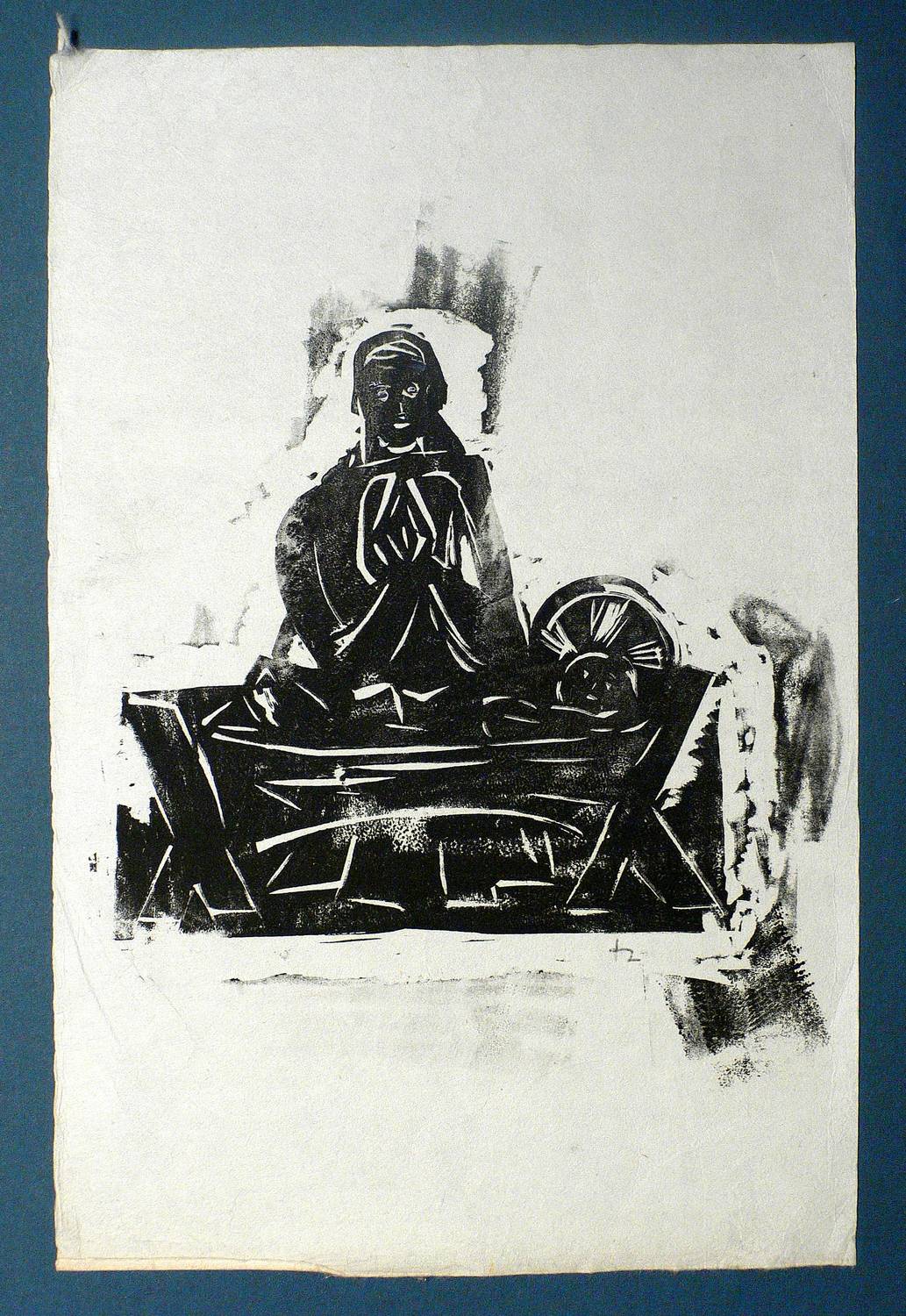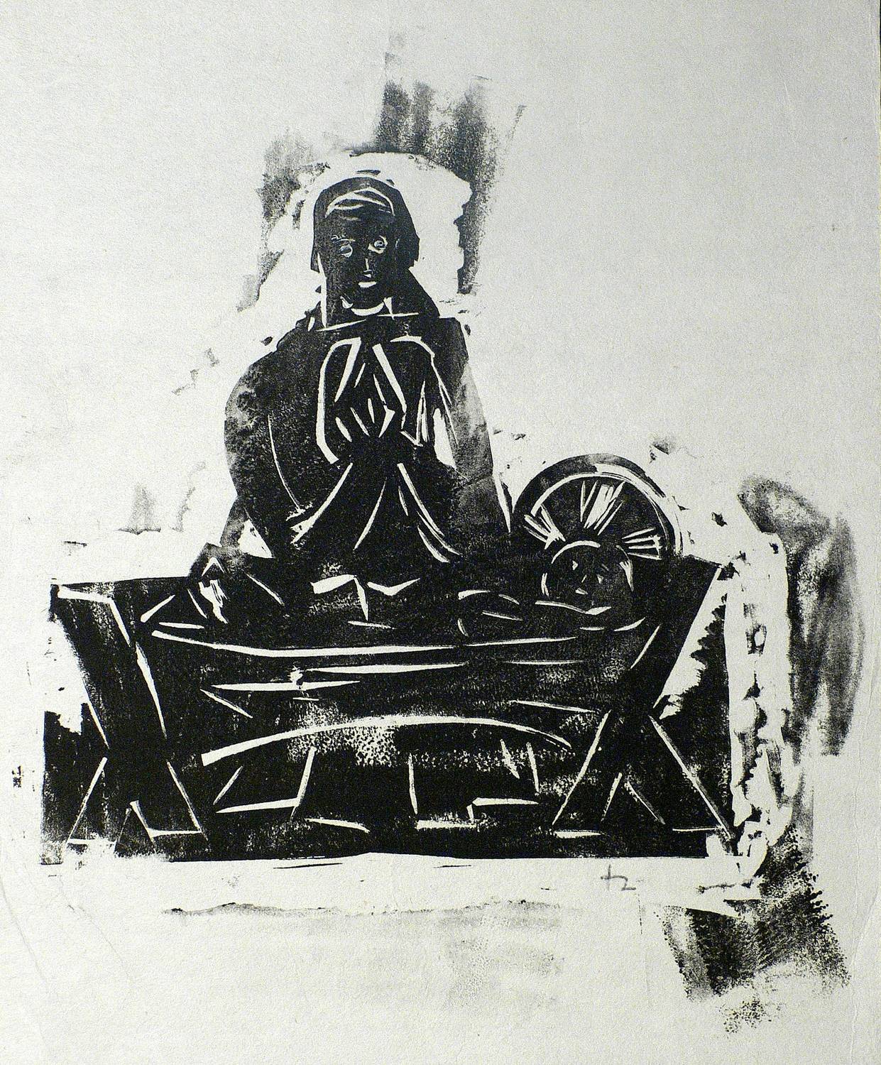 Um 1930. Linolschnitt, in Schwarz, partiell gehöht, auf Velin. – Originale Künstlergrafik, von Joachim Heuer. – 26,0 x 22,0 cm (Darstellung / Druckbild), 36 x 23 cm (Blatt).