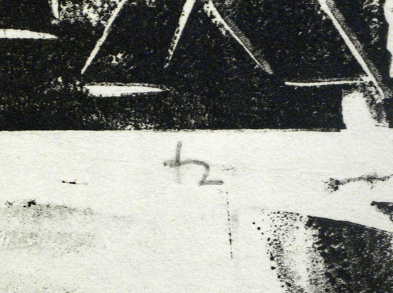 In Kugelschreiber monogrammiert unten rechts: ″JH″. – Stärker knickspurig, im Randbereich etwas angeschmutzt. Insgesamt mäßiger Zustand.