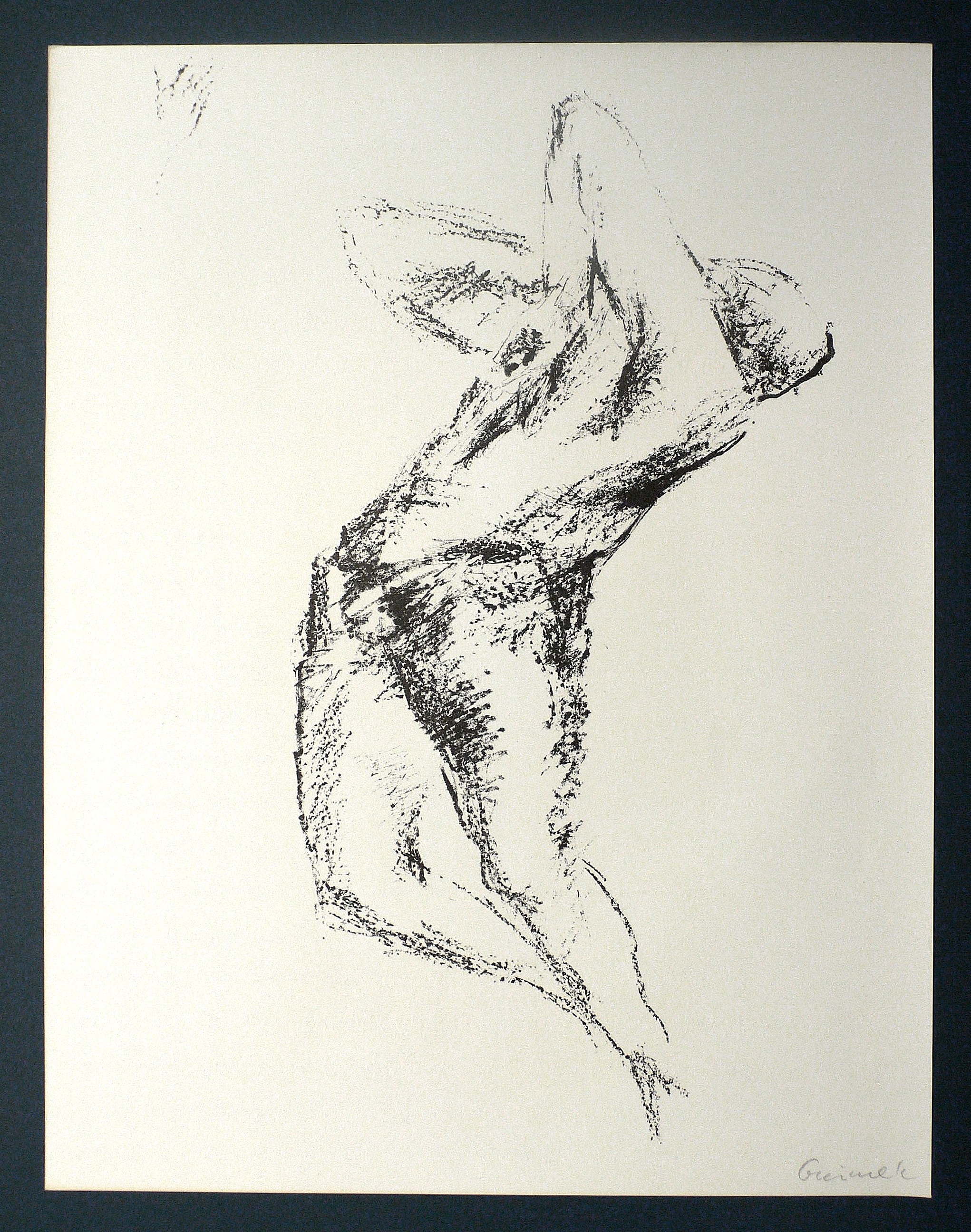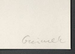 Aus: Karl Amadeus Hartmann Mappe (München: Richard P. Hartmann 1964). – In Bleistift signiert unten rechts. – Verso druckgrafisch bezeichnet und in Bleistift nummeriert: ″Epitaph für Karl Amadeus Hartmann Mappe Nr. 95/100; Waldemar Grzimek, Lithographie, handsigniert″. – Minimal nickspurig. Blattrand etwas bestoßen und leicht gegilbt. Insgesamt gut erhalten.