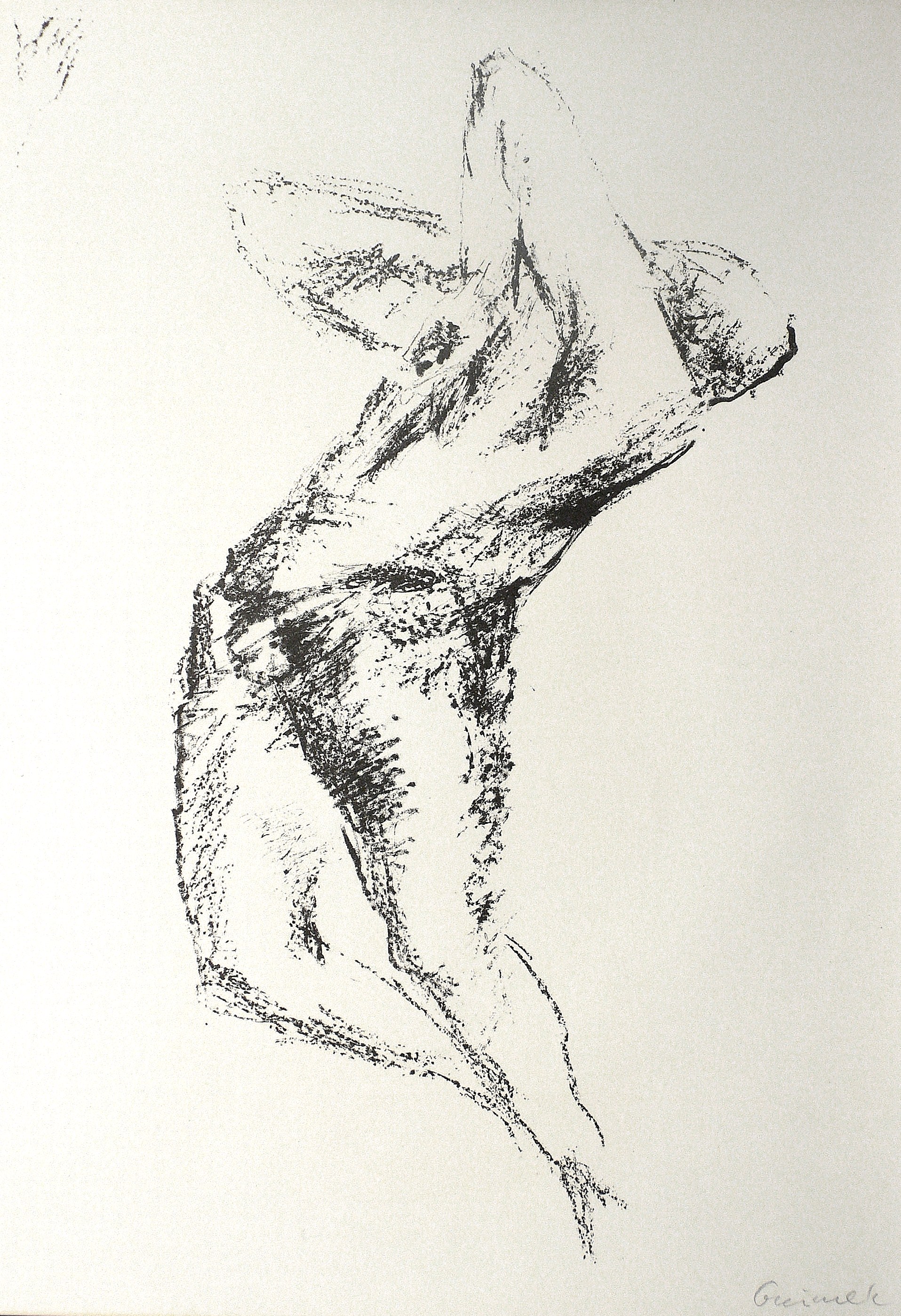 Um 1965. Lithografie / Kreidelithografie, in Schwarz, auf hellgelbem Velin. – Originale Künstlergrafik, von Waldemar Grzimek. – 46,0 x 23,0 cm (Darstellung), 48 x 37 cm (Blatt).