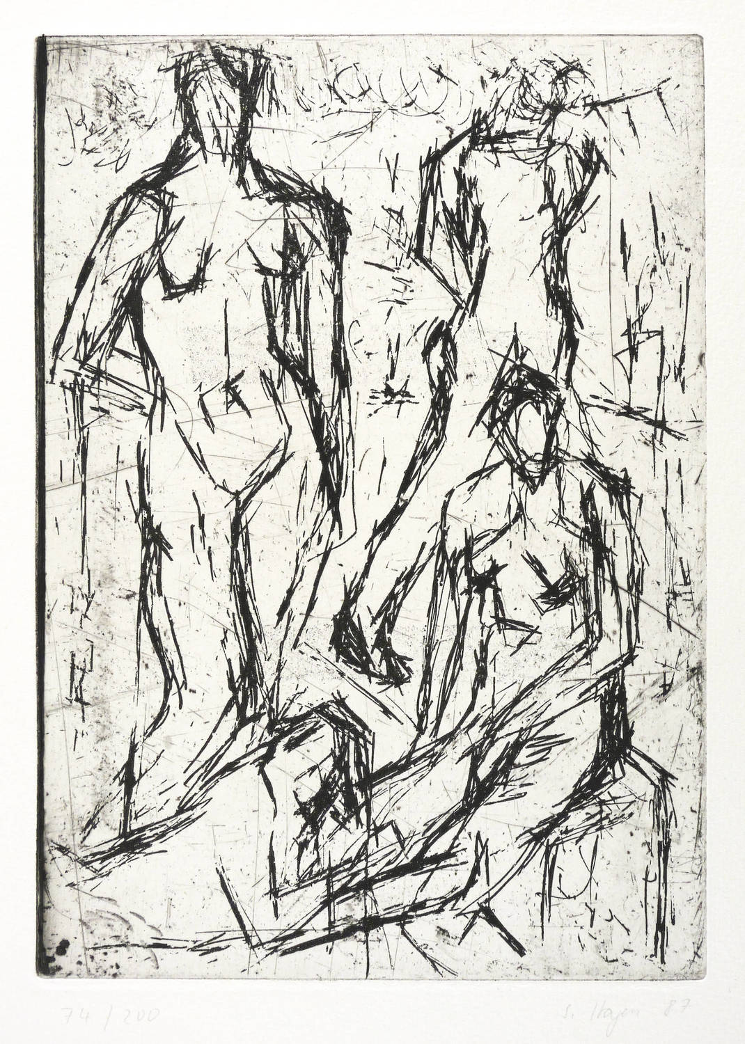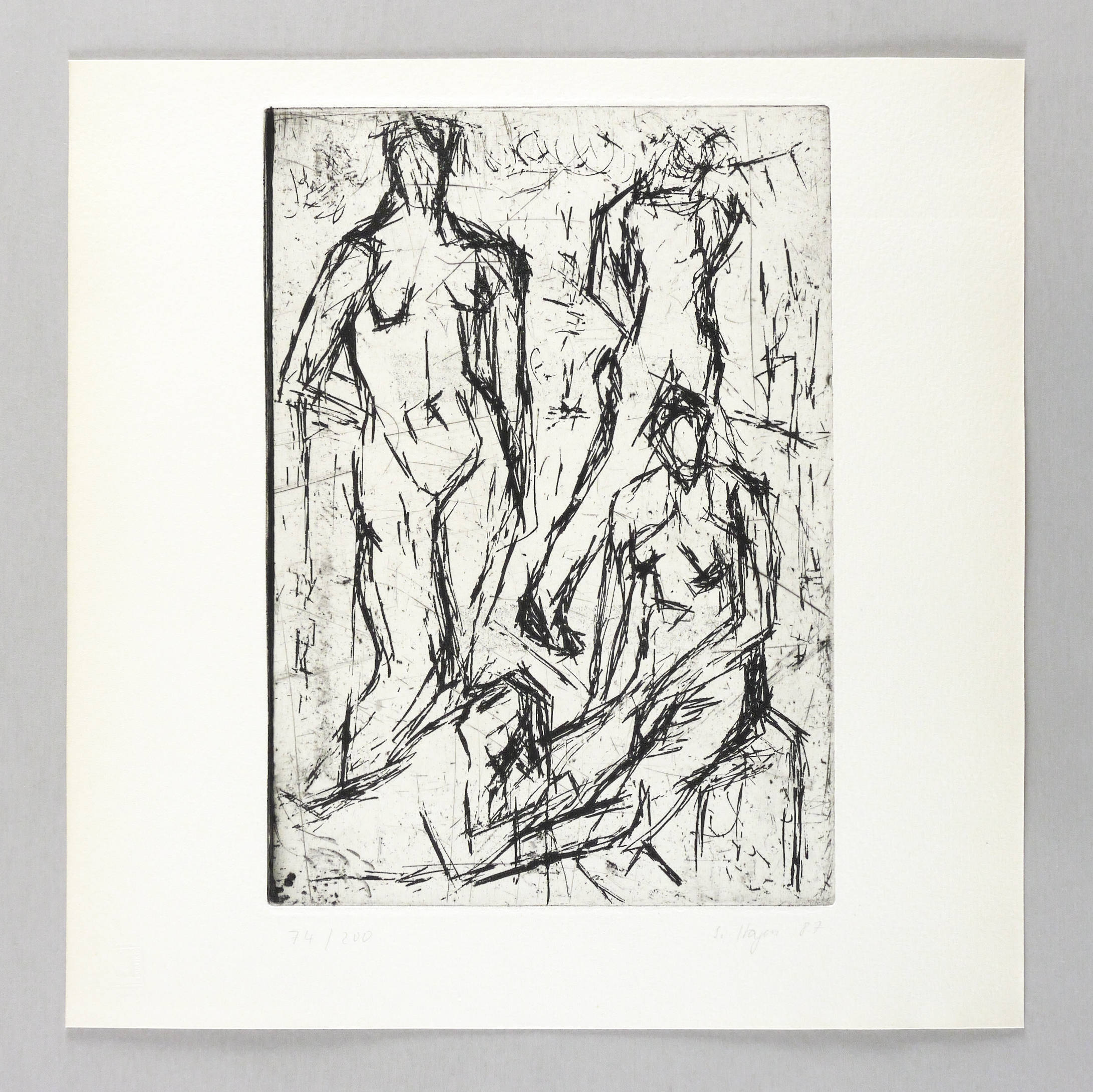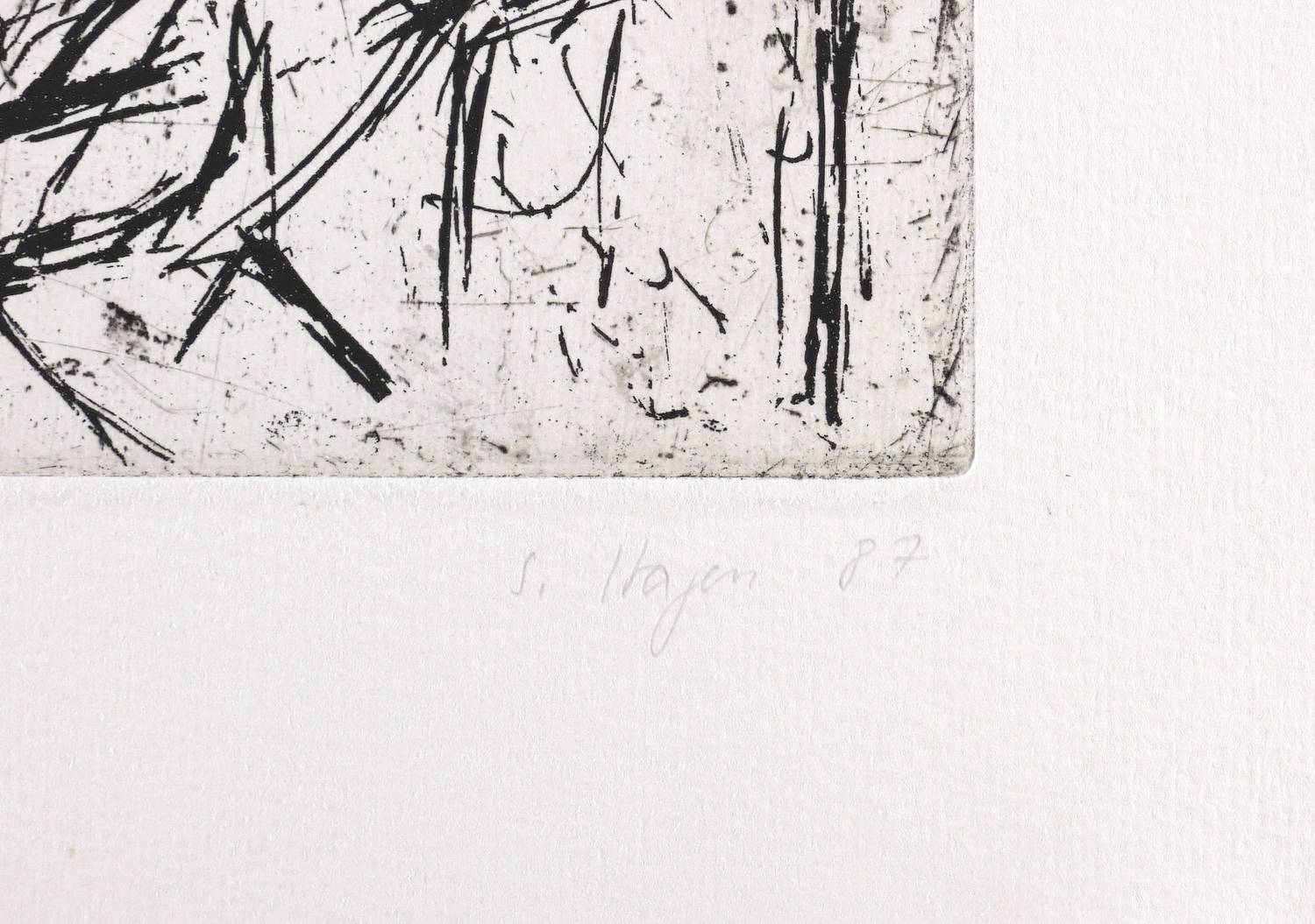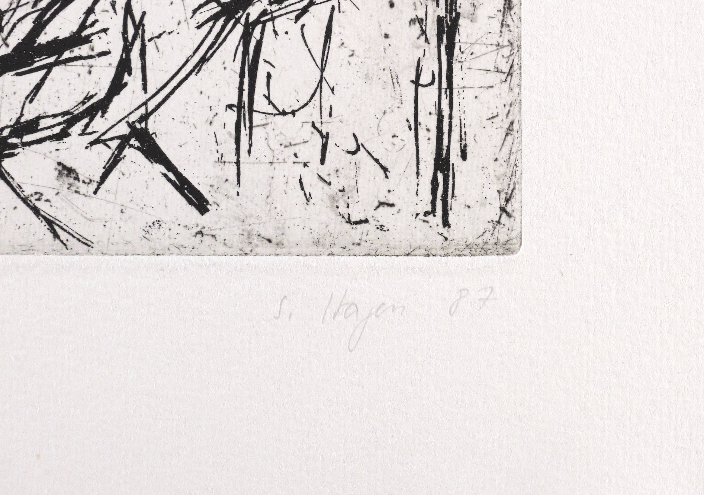 1987. Radierung / Reservage & Kaltnadel, mit Plattenton, in Schwarz, auf hellchamois Weißenborn. – Originale Künstlergrafik, von Sylvia Hagen. – Auflage Exemplar Nr. 74/200. – 29,6 x 21,0 cm (Darstellung / Platte), 36 x 36 cm (Blatt).