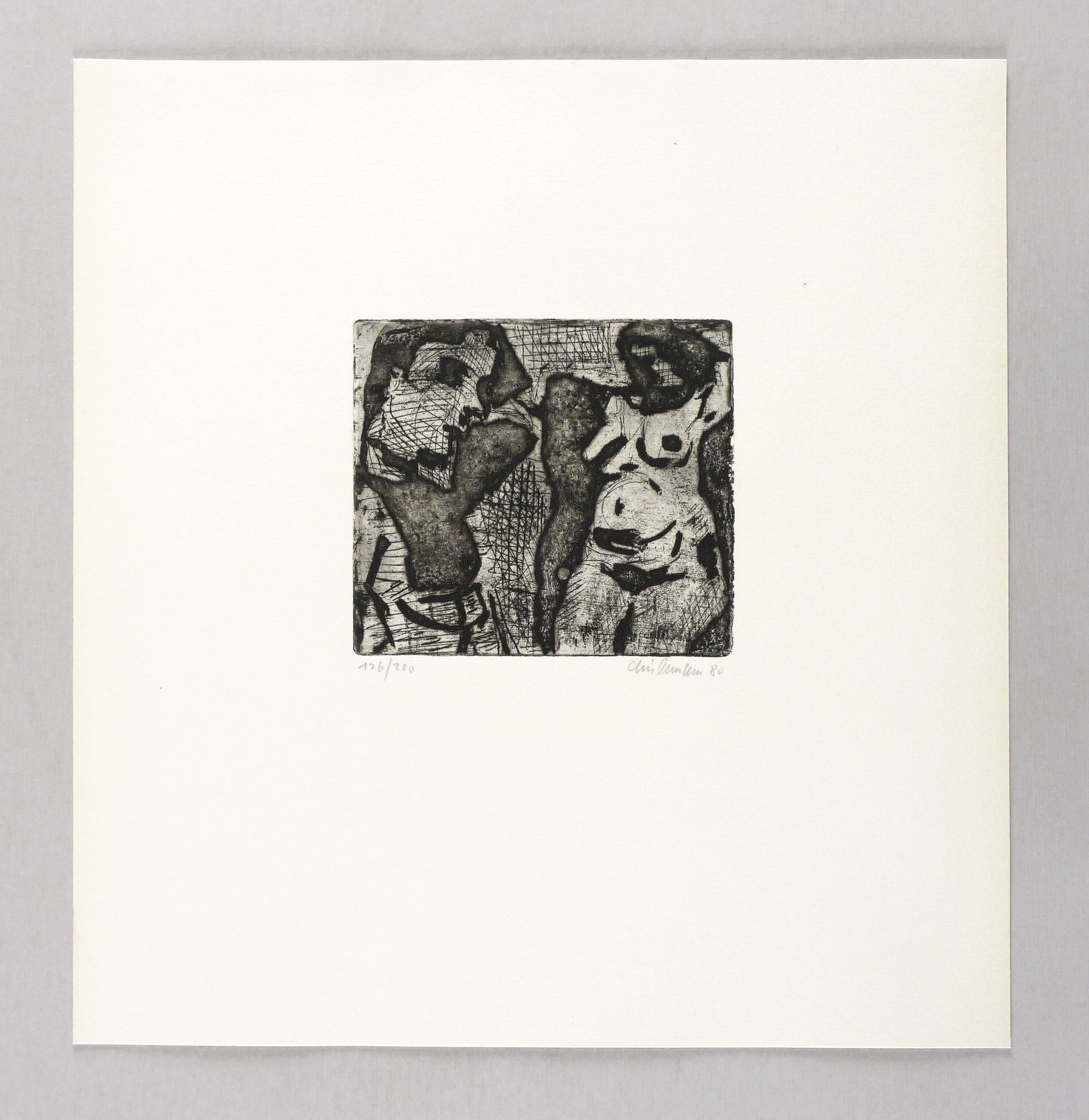 1980. Radierung / Strichätzung & Aquatinta, in Schwarz, auf hartem hellchamois Weißenborn. – Originale Künstlergrafik, von Rolf Lindemann. – Auflage Exemplar Nr. 126/200. – 12,7 x 14,3 cm (Darstellung / Platte), 37 x 35 cm (Blatt).