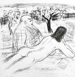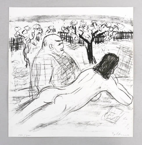 1984. Lithografie / Kreidelithografie, in Schwarz, auf hellchamois Velinkarton. – Originale Künstlergrafik, von Dieter Goltzsche. – Auflage Exemplar Nr. 177/200. – 33,0 x 35,0 cm (Darstellung / Druckbild), 37 x 35 cm (Blatt).