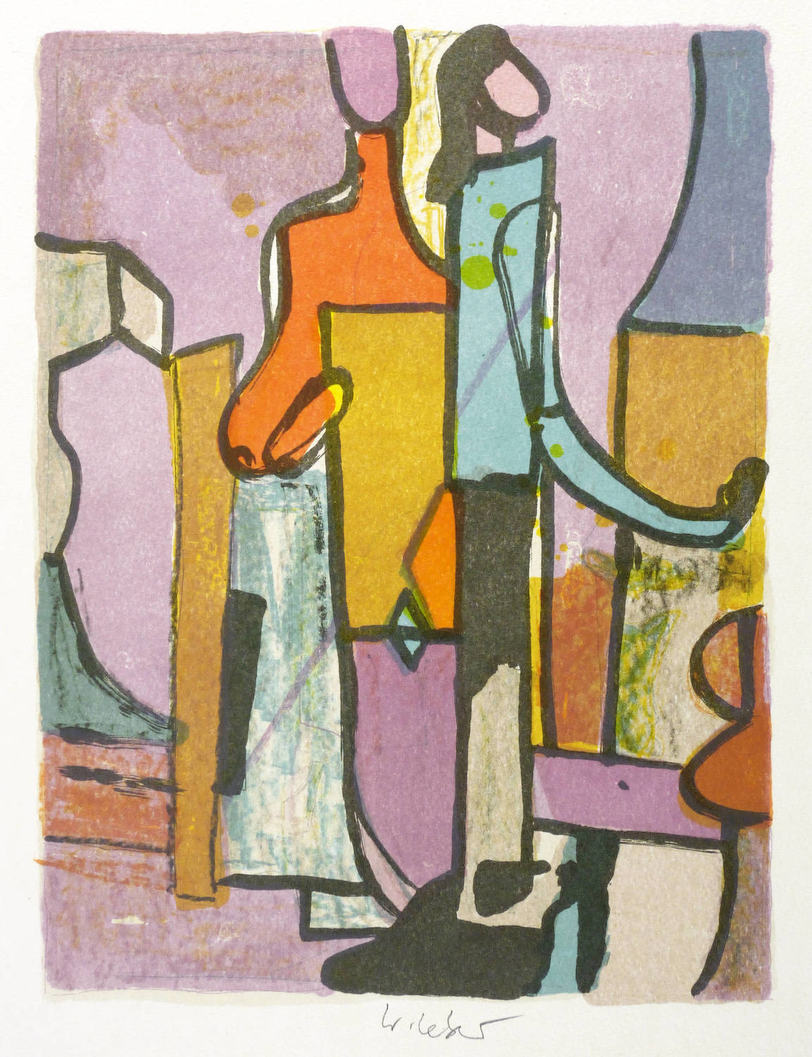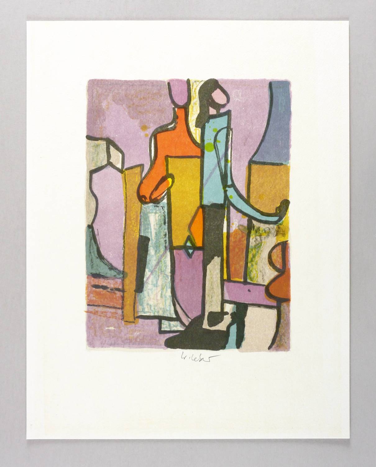 2002. Farblithografie / Pinsellithografie, in 5 Farben, auf festem hellchamois Velinkarton. – Originale Künstlergrafik, von Wolfgang Leber. – Auflage 300 Exemplare. – 29,0 x 22,0 cm (Darstellung / Druckbild), 45 x 35 cm (Blatt).