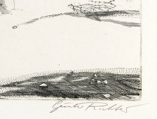 1979. Kupferstich / Linienstich, in Schwarz, auf gehämmertem Maschinenbütten. – Originale Künstlergrafik, von Günter Richter. – Auflage Exemplar Nr. 1/20. – 30,6 x 33,8 cm (Darstellung / Platte), 43 x 54 cm (Blatt).