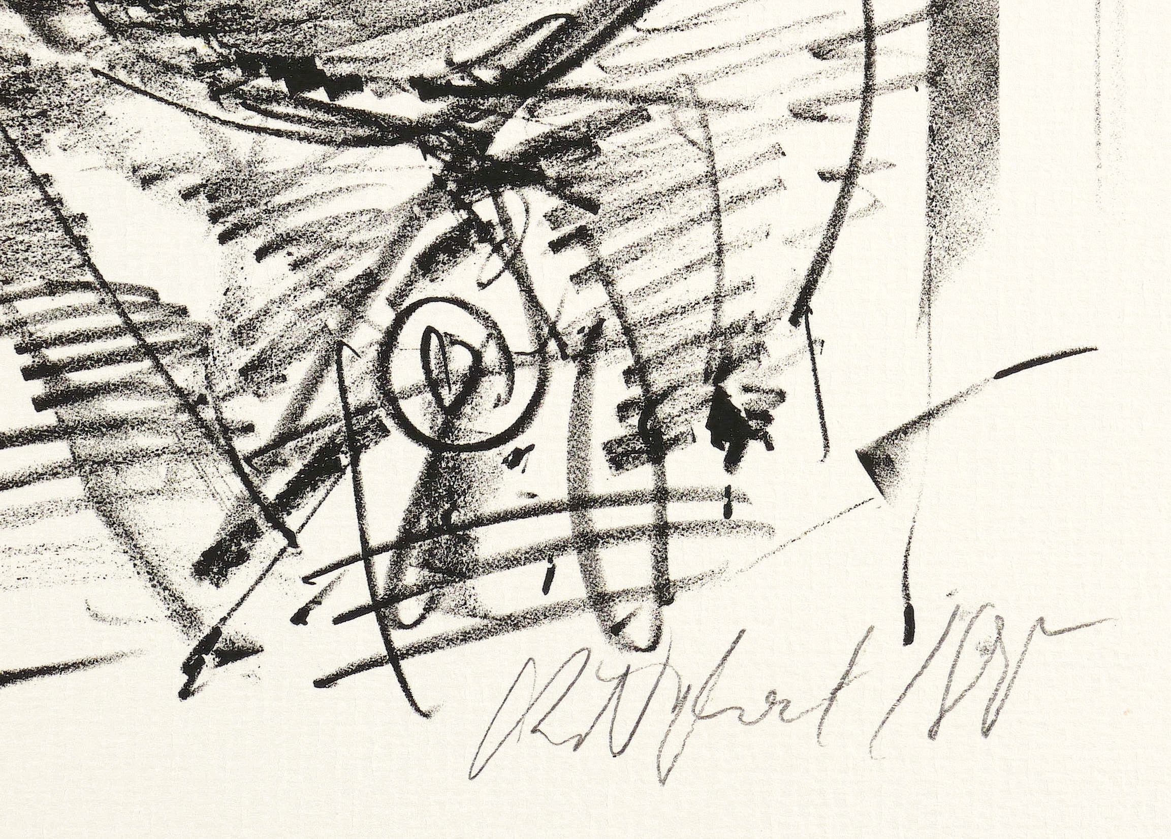 1988. Lithografie / Kreidelithografie, in Schwarz. – Originale Künstlergrafik, von Frank Ruddigkeit. – 31,0 x 29,0 cm (Darstellung), 36,5 x 36 cm (Blatt).