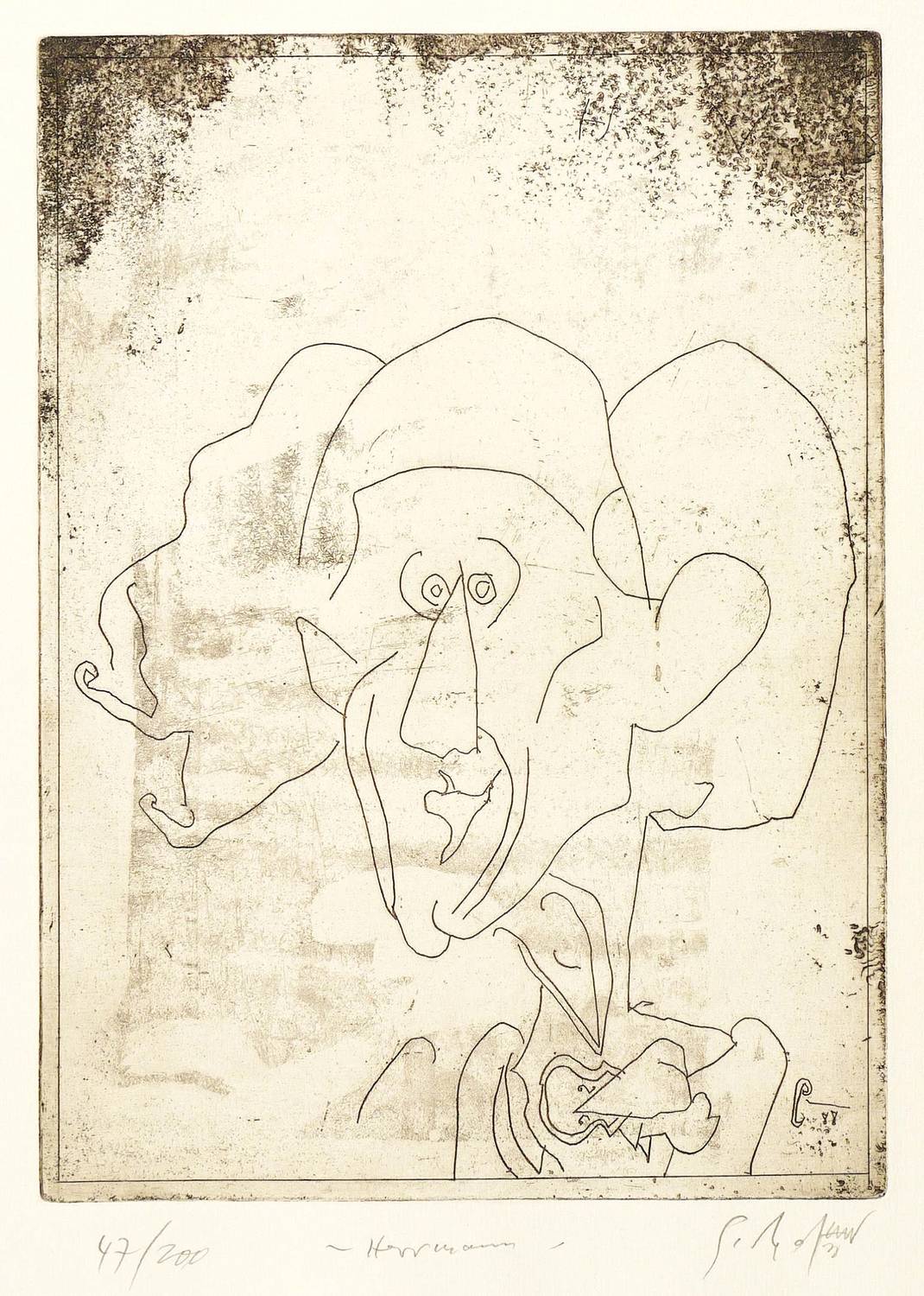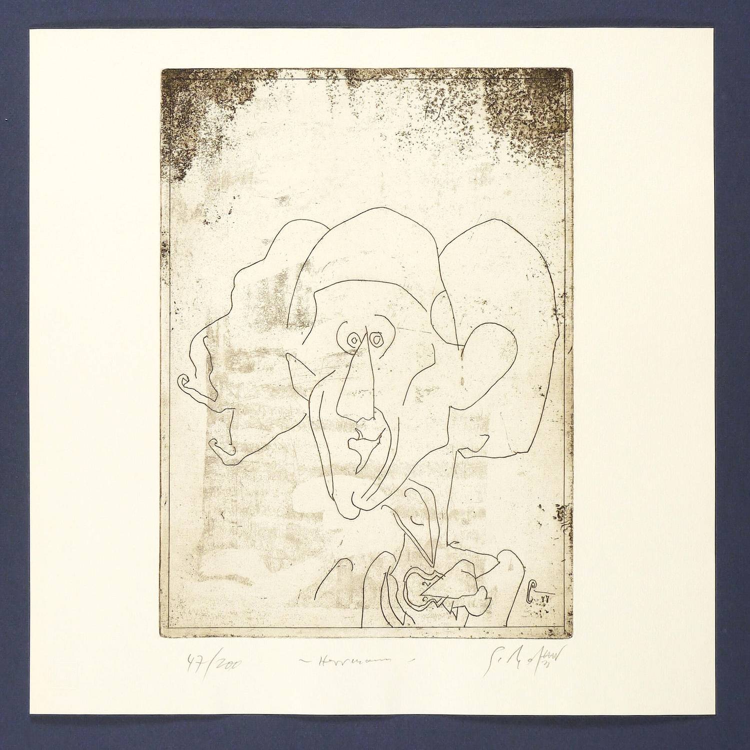 1988. Radierung / Strichätzung & Aquatinta, in Schwarz, auf Weißenborn-Bütten. – Originale Künstlergrafik, von Gerd Mackensen. – Auflage Exemplar Nr. 47/200. – 29,8 x 21,6 cm (Darstellung / Platte), 36 x 36 cm (Blatt).