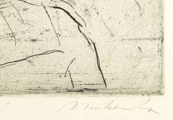 1988. Radierung / Kaltnadel & Reservage, mit Plattenton, in Schwarz, auf Weißenborn-Bütten. – Von Reinhard Minkewitz. – Auflage Exemplar Nr. 47/200. – 33,3 x 24,9 cm (Darstellung / Platte), 37,5 x 36 cm (Blatt).
