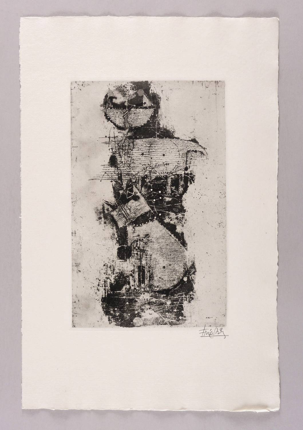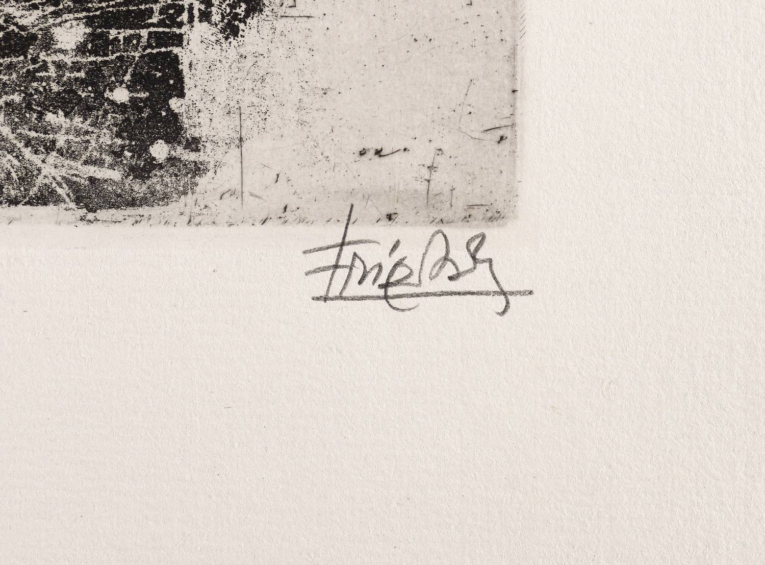 1963. Radierung / Aquatinta, in Schwarz, auf rauem hellchamois Auvergne. – Originale Künstlergrafik, von Johnny Friedländer. – Auflage 60 Exemplare. – 31,8 x 20,0 cm (Darstellung / Druckbild), 51 x 33 cm (Blatt), 32,6 x 20,7 cm (Platte).