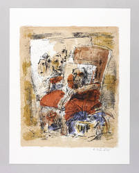 2002. Farblithografie / Pinsellithografie, in 5 Farben, auf hartem hellem Velinkarton. – Originale Künstlergrafik, von Rolf Händler. – Auflage 300 Exemplare. – 35,0 x 28,4 cm (Darstellung / Druckbild), 45 x 35 cm (Blatt).