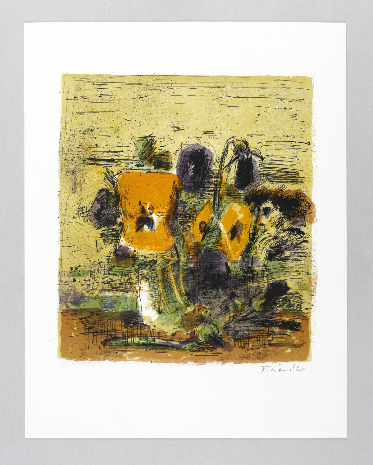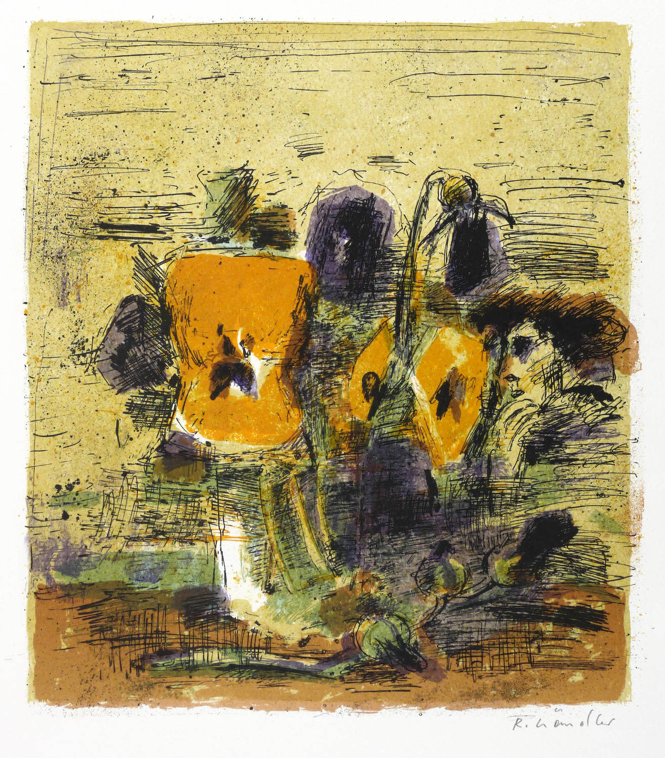 2002. Farblithografie / Pinsellithografie, in 5 Farben, auf hartem hellem Velinkarton. – Originale Künstlergrafik, von Rolf Händler. – Auflage 300 Exemplare. – 31,3 x 27,7 cm (Darstellung / Druckbild), 45 x 35 cm (Blatt).