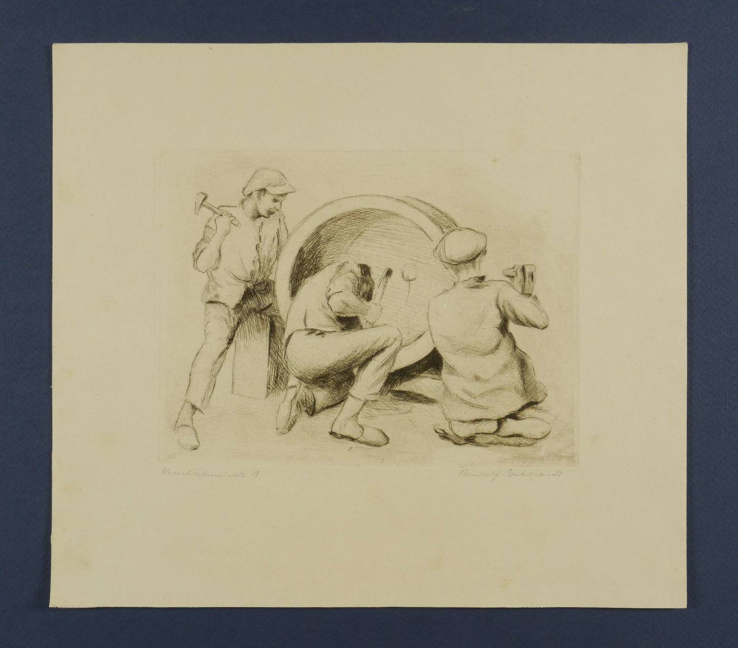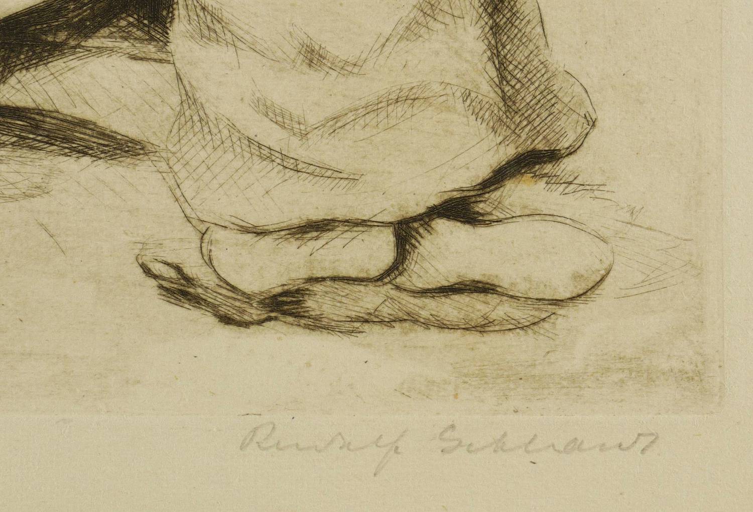 Um 1930. Radierung / Kaltnadel, in Schwarz, auf gelblichem Velin. – Originale Künstlergrafik, von Rudolf Gebhardt. – 12,9 x 17,2 cm (Darstellung / Platte), 23 x 26 cm (Blatt).