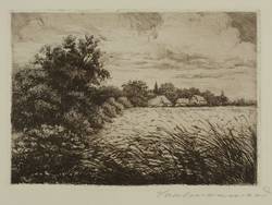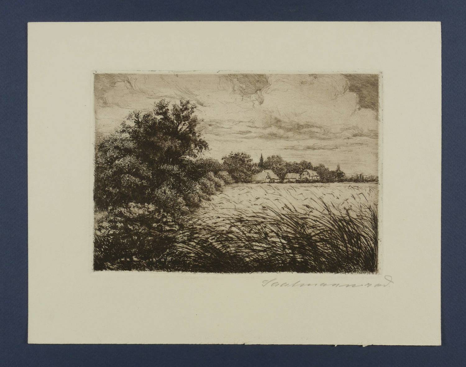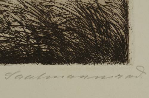 Um 1925. Radierung / Strichätzung & Aquatinta, in Schwarz, auf weichem Kupferdruckpapier. – Originale Künstlergrafik, von Erich Saalmann. – 14,8 x 21,4 cm (Darstellung / Platte), 24 x 30 cm (Blatt).