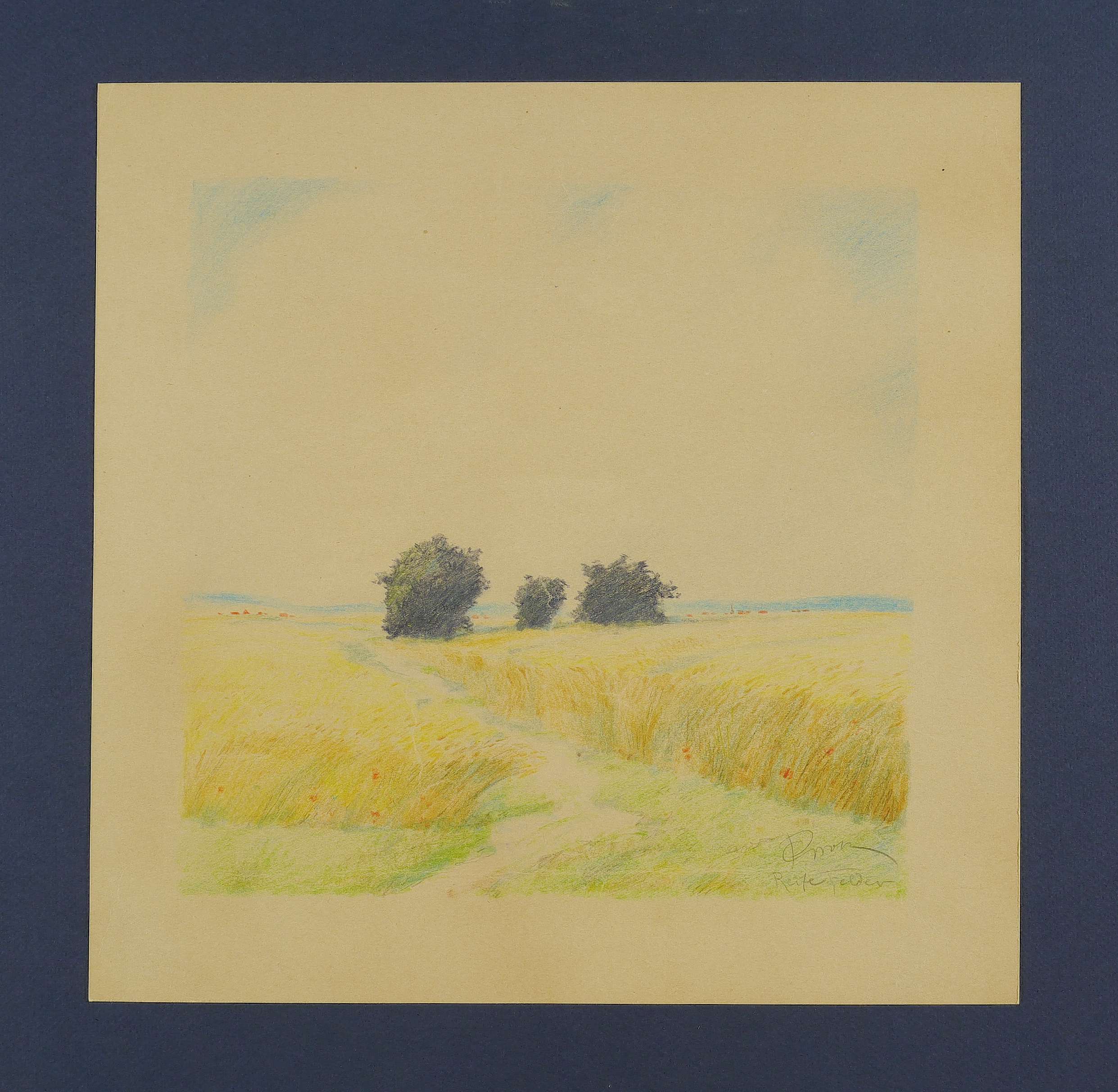 Rechts unten in Bleistift signiert. Dazu bezeichnet: ″Reife Felder″. – Papier partiell etwas knickspurig. Guter Gesamteindruck.