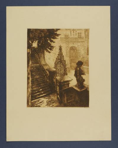 1911. Radierung / Strichätzung, in Dunkelbraun, auf Kupferdruckpapier. – Originale Künstlergrafik, von Siegfried Mackowsky. – 24,1 x 19,0 cm (Darstellung / Platte), 41 x 32 cm (Blatt).