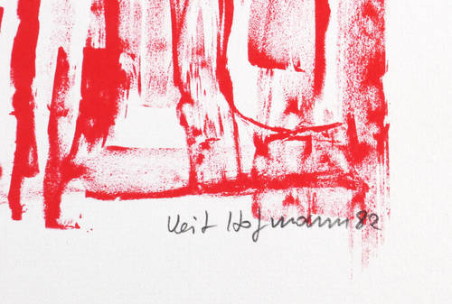 1982. Farblithografie / Kreidelithografie, in Rot & Schwarz, auf leichtem weißem Maschinenbütten. – Originale Künstlergrafik, von Veit Hofmann. – Auflage Exemplar Nr. 5/100. – 40,4 x 28,6 cm (Darstellung / Druckbild), 44 x 35 cm (Blatt).