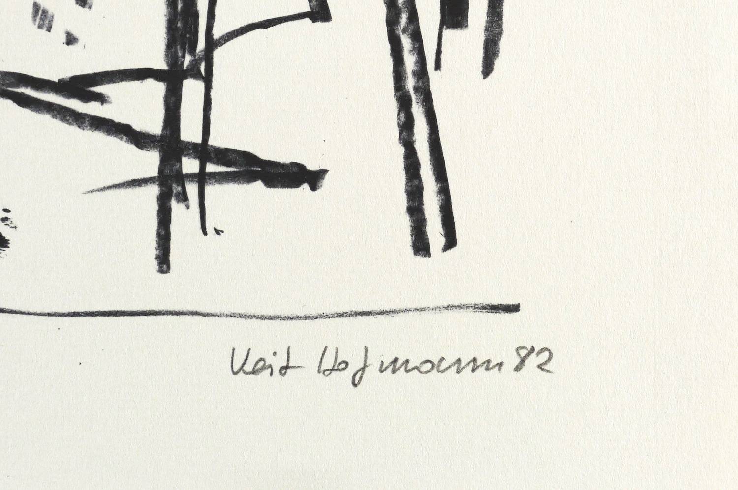 1982. Lithografie / Kreidelithografie, in Schwarz, auf leichtem hellchamois Maschinenbütten. – Originale Künstlergrafik, von Veit Hofmann. – Auflage Exemplar Nr. 5/100. – 39,8 x 28,0 cm (Darstellung / Druckbild), 44 x 35 cm (Blatt).