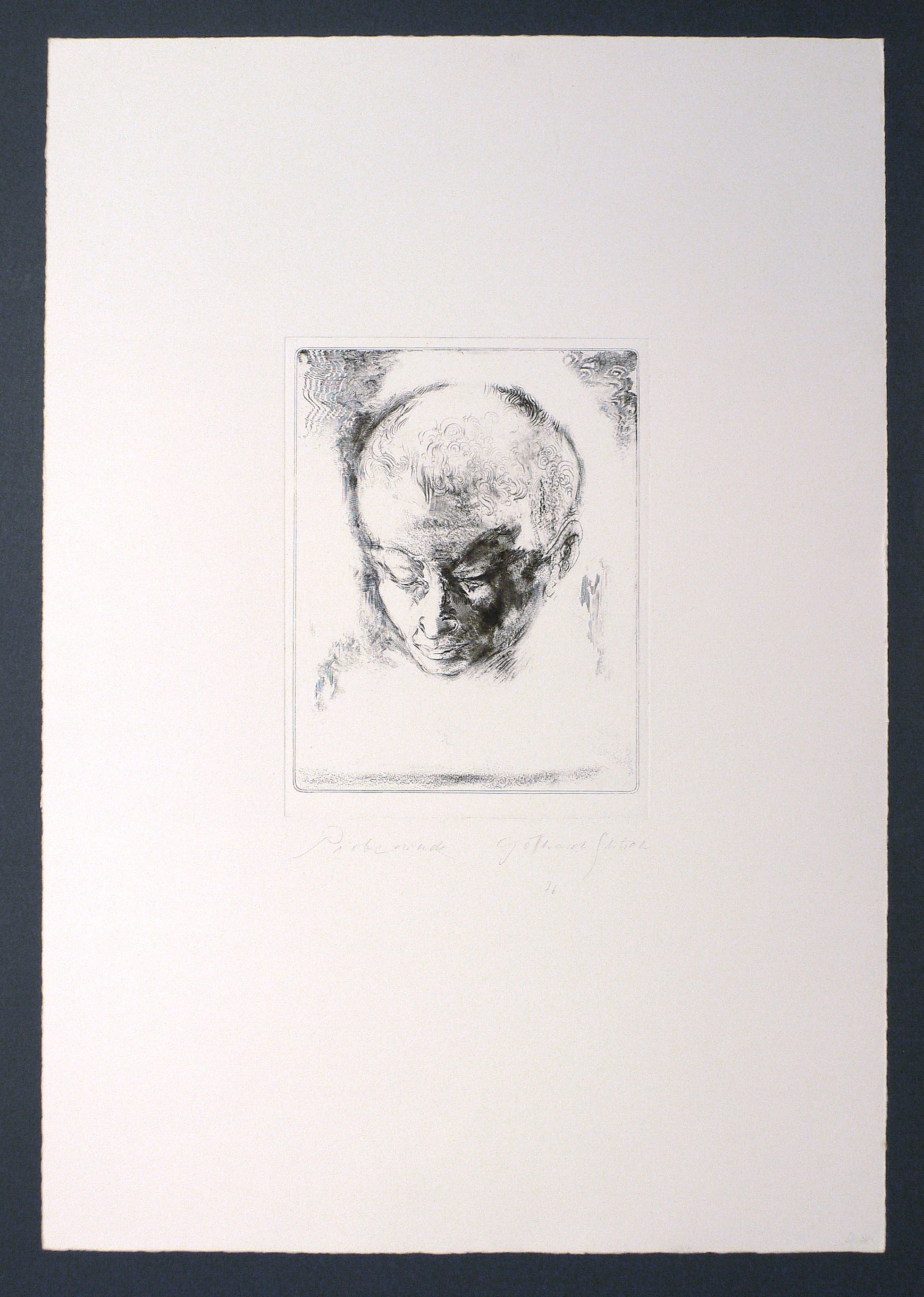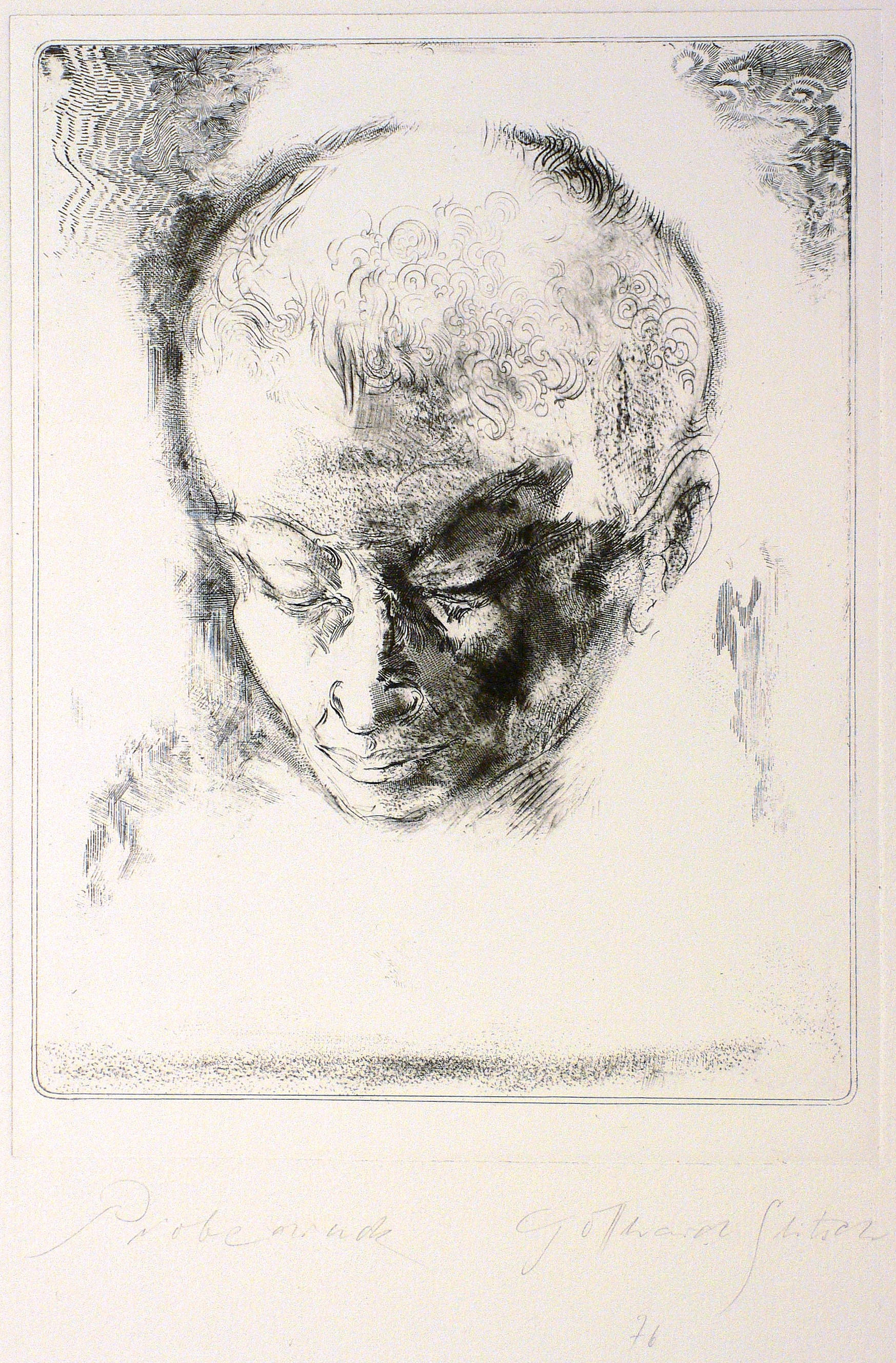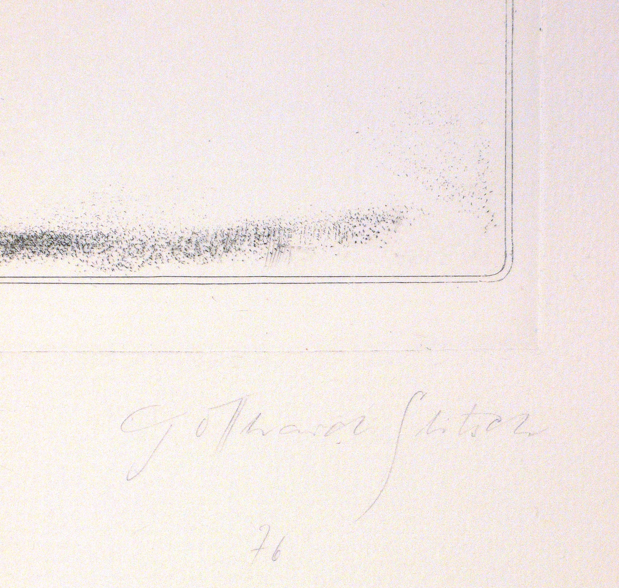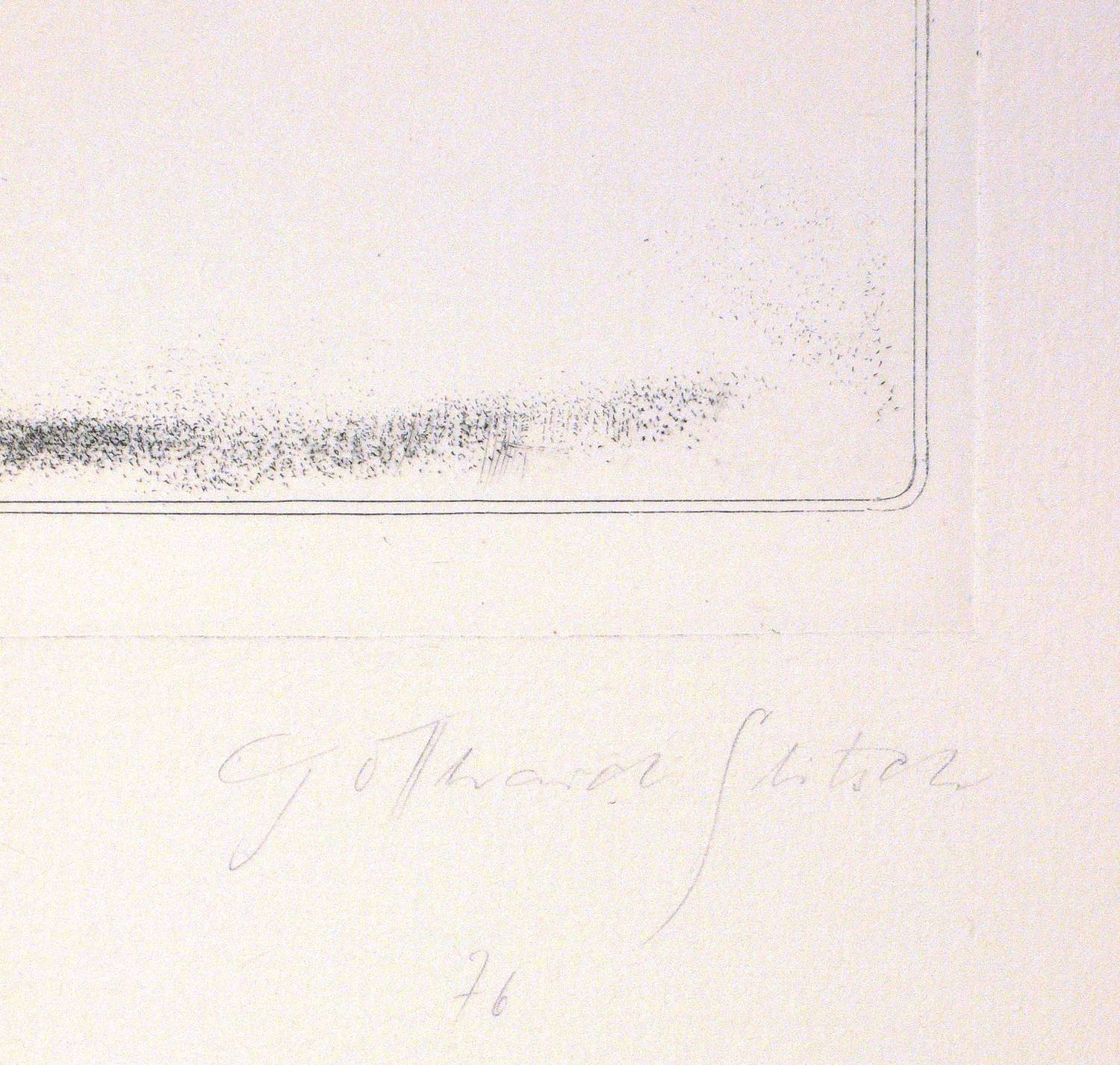 1976. Radierung / Strichätzung & Roulette, in Schwarz, auf hellem Velin. – Originale Künstlergrafik, von Gotthard Glitsch. – Probedruck. – 18,3 x 14,2 cm (Darstellung / Druckbild), 19,7 x 15,0 cm (Platte), 51 x 35 cm (Blatt).