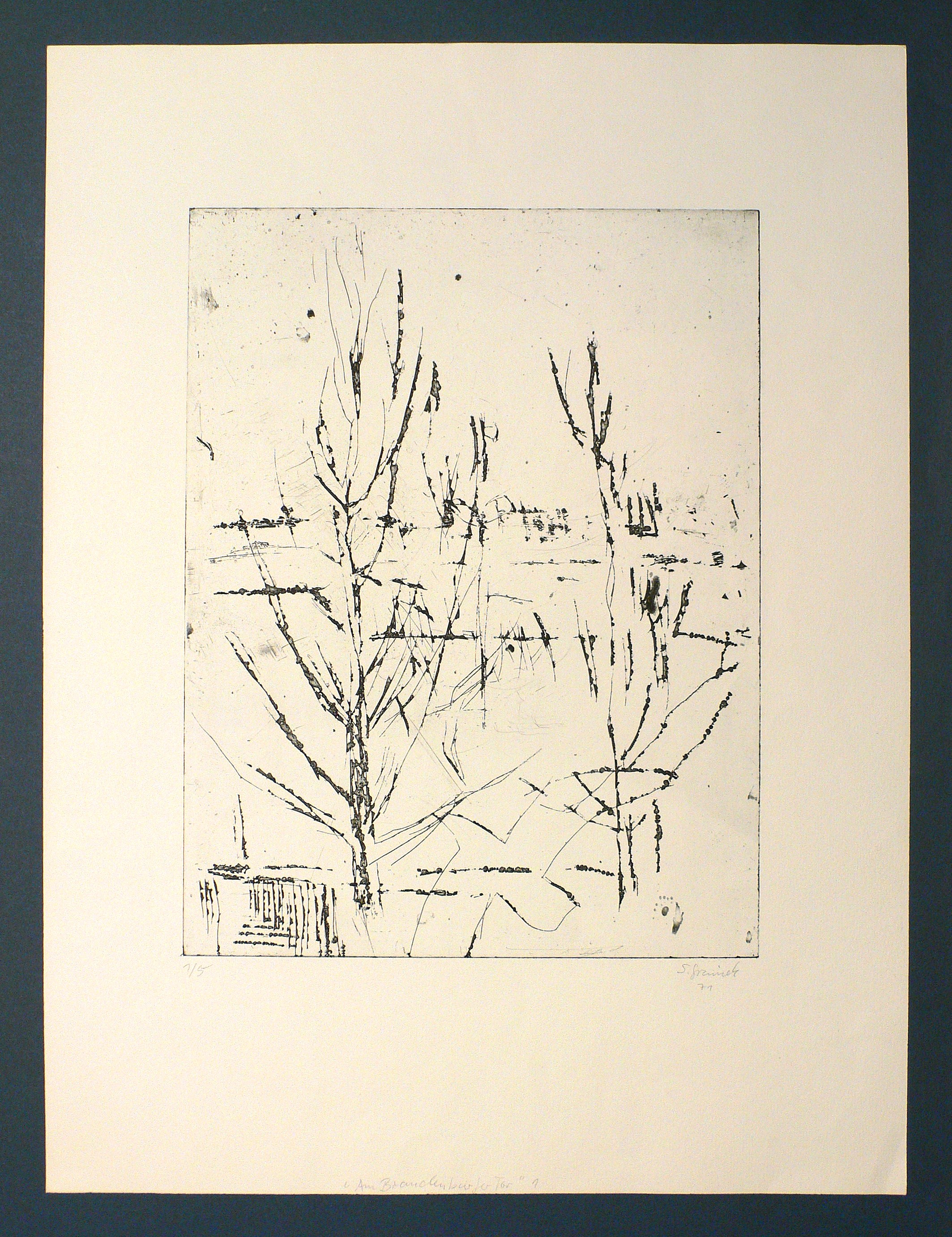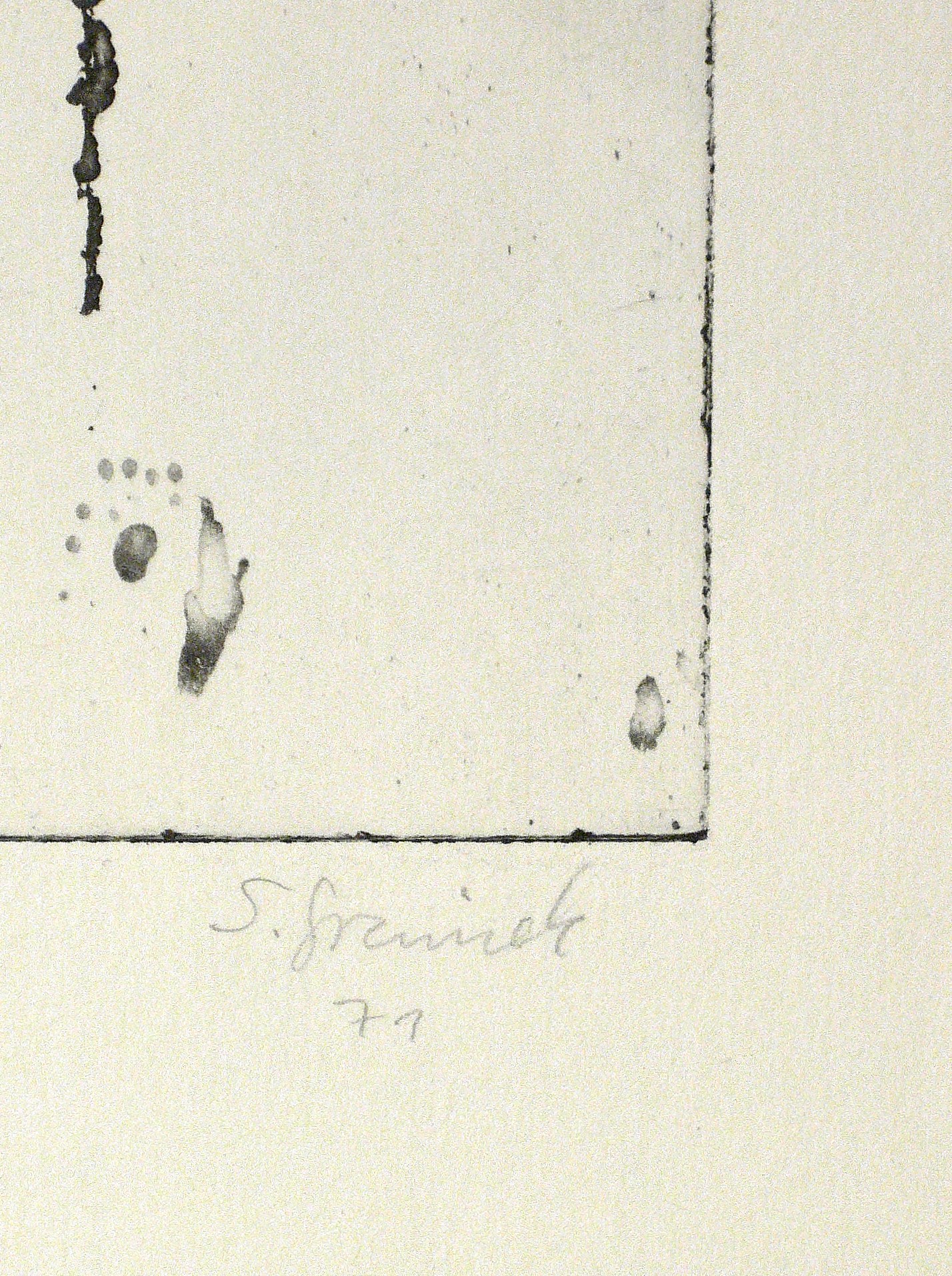 1971. Radierung / Strichätzung & Aquatinta, in Schwarz, auf hellgelbem Velin. – Originale Künstlergrafik, von Sabina Grzimek. – Auflage Exemplar Nr. 1/5. – 32,2 x 24,8 cm (Darstellung / Platte), 50 x 37 cm (Blatt).