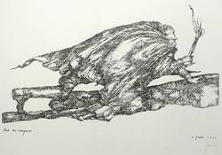 Heinz Zander (1939 Wolfen - 2024 Leipzig). Deutscher Maler, Grafiker und Schriftsteller. 1959-64 Studium an der Hochschule für Grafik und Buchkunst in Leipzig u.a. bei Bernhard Heisig. 1967-70 Meisterschüler von Fritz Cremer an der Akademie der Künste in Berlin (Ost). Seit 1970 freischaffend. Namhafter Vertreter der realistisch-manieristischen Strömung der Leipziger Schule. Seine an altmeisterlicher Manier orientierte Malweise lässt Vorbilder wie Hieronymus Bosch, Albrecht Altdorfer, Matthias Grünewald sowie die italienischen Manieristen erkennen.