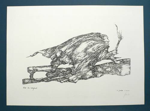 1980. Lithografie / Federlithografie, in Schwarz, auf Büttenpapier. – Originale Künstlergrafik, von Heinz Zander. – 24,0 x 42,5 cm (Darstellung), 39 x 54 cm (Blatt).