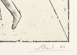 1980. Radierung / Strichätzung & Reservage, in Schwarz, auf hellgelbem Weißenborn-Bütten. – Von Hans Scheib. – Auflage Exemplar Nr. 168/200. – 32,0 x 24,8 cm (Darstellung / Platte), 36,5 x 35 cm (Blatt).