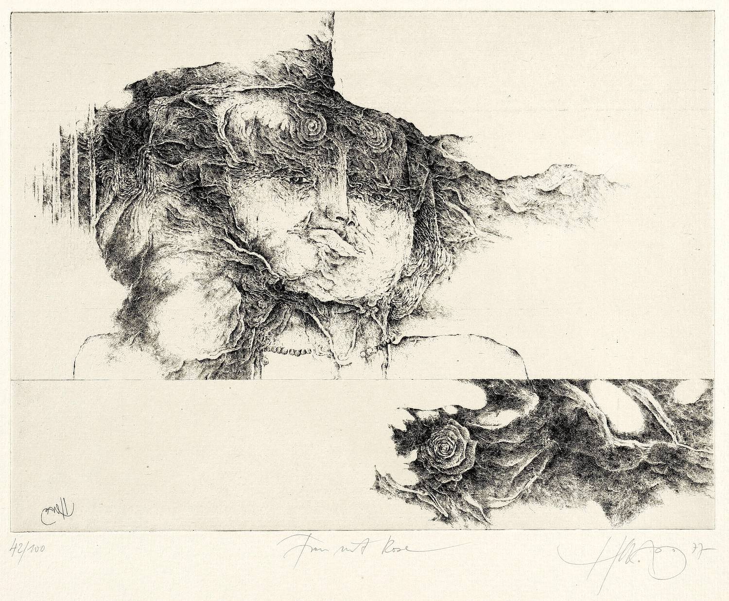 Walter Herzog (*1936 Dresden, lebt und arbeitet in Berlin). Deutscher Grafiker. 1950-53 Maurerlehre und Gesellentätigkeit, Zeichenkurse bei Etha Richter. 1953-56 Fachschule für Bauwesen Görlitz. 1957-60 Architekturstudium an der Technischen Hochschule Dresden, Malerei und Grafik bei Georg Nerlich. 1960/61 als Architekt in Dresden tätig, nebenbei Beschäftigung mit informeller Malerei und Zeichnung. 1963 Umzug nach Berlin, Bauten im Berliner Stadtzentrum und in Berlin-Karlshorst. Ab 1969 beschäftigt er sich wieder stärker mit dem Zeichnen. 1971 beginnt er mit dem Radieren, der Technik in der er einen unverwechselbaren Stil und höchste Perfektion entwickelt. 1974 Mitglied der VBK der DDR. 1980 Aufgabe des Architektenberufs, um sich ausschließlich der Bildenden Kunst zu widmen.