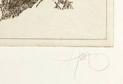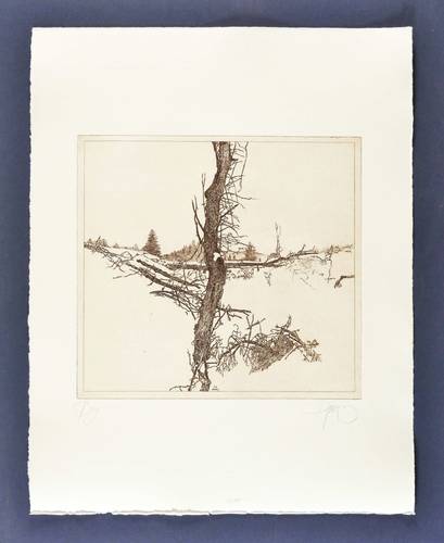 1984. Radierung / Strichätzung, in Rotbraun, mit Plattenton, auf Büttenpapier. – Originale Künstlergrafik, von Walter Herzog. – Auflage Exemplar Nr. 69/100. – 27,1 x 29,3 cm (Darstellung / Platte), 49 x 39,5 cm (Blatt).