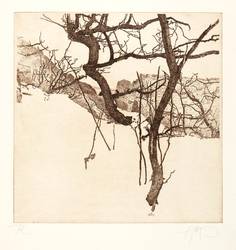 1984. Radierung / Strichätzung, in Rotbraun, mit Plattenton, auf Büttenpapier. – Originale Künstlergrafik, von Walter Herzog. – Auflage Exemplar Nr. 69/100. – 29,2 x 29,0 cm (Darstellung / Platte), 49 x 39,5 cm (Blatt).