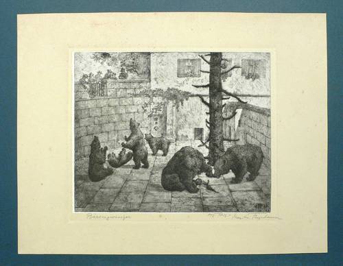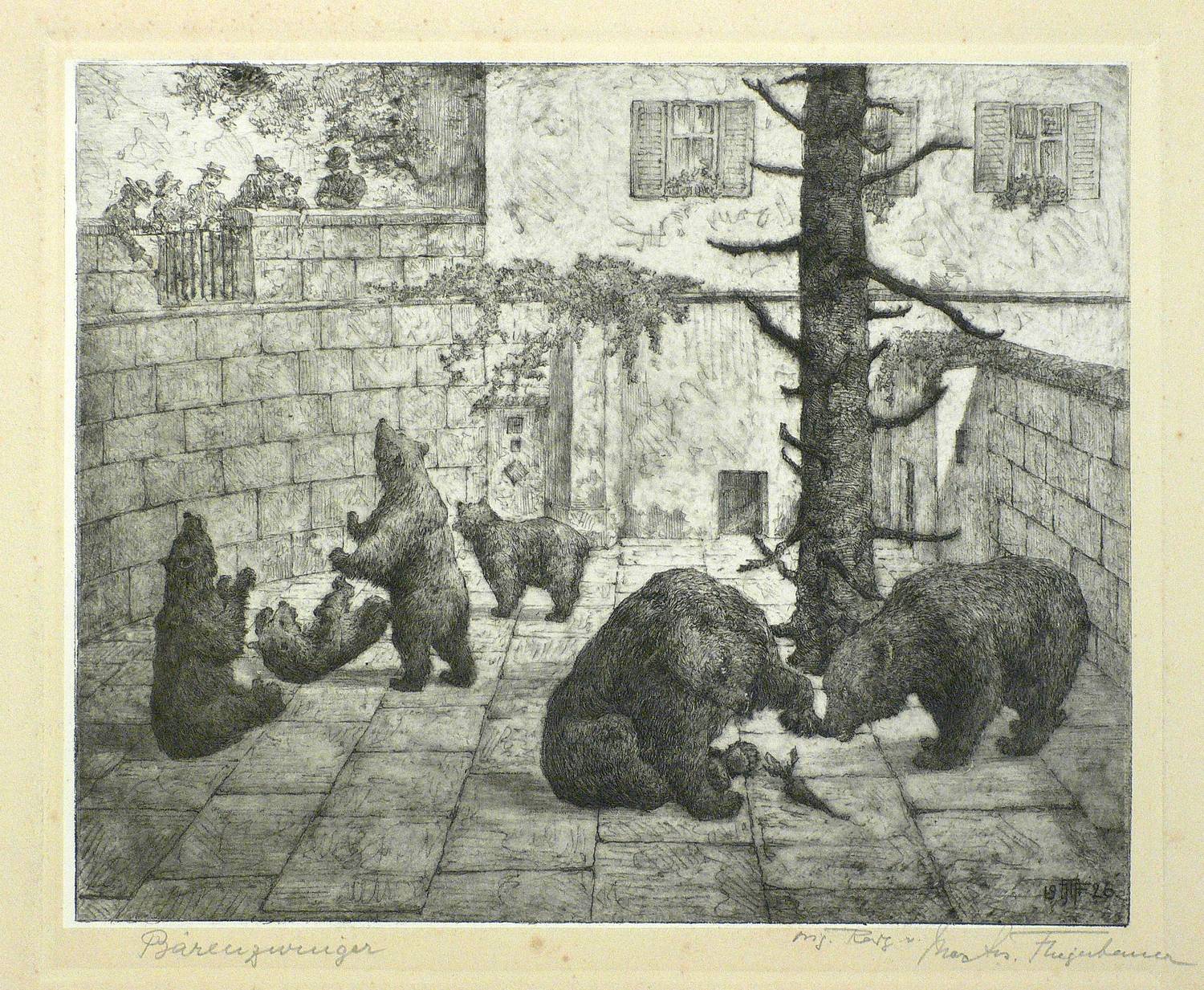 1926. Radierung / Aquatinta, in Schwarz, auf gewalztem China, auf Kupferdruck. – Originale Künstlergrafik, von Max Josef Fliegerbauer. – 17,0 x 21,1 cm (Darstellung), 19,0 x 22,5 cm (Platte), 26 x 34 cm (Blatt).