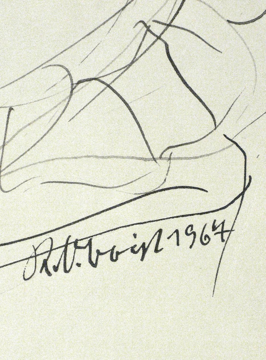 1967. Zeichnung / Federzeichnung, in schwarzer Tusche, auf hellem Velin. – Originale Künstlergrafik, von Richard Otto Voigt. – Unikat. – 42,0 x 29,7 cm (Darstellung / Einfassungslinie).
