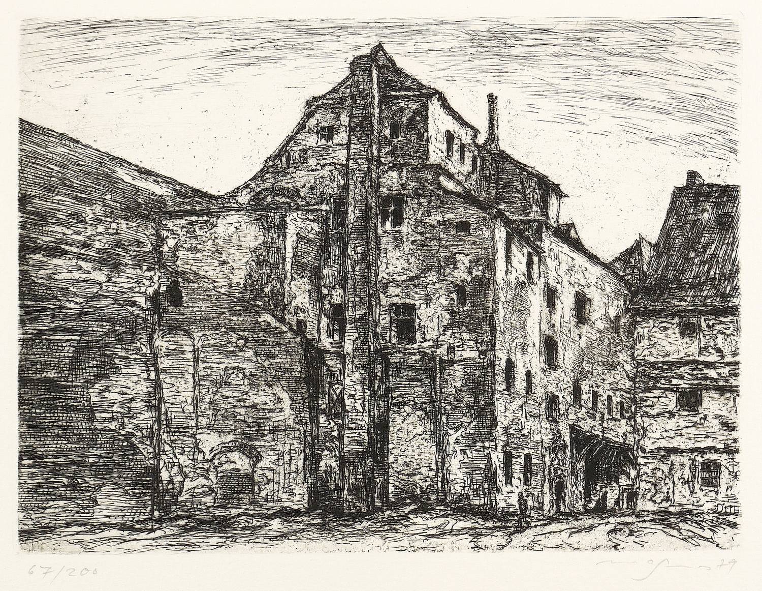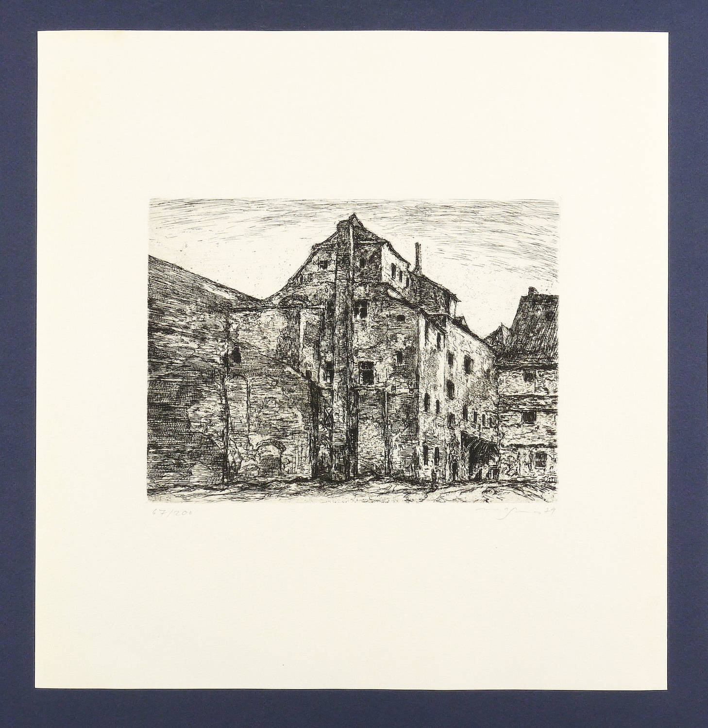 1979. Radierung / Strichätzung, in Schwarz, auf Weißenborn-Bütten. – Originale Künstlergrafik, von Klaus Magnus. – Auflage Exemplar Nr. 67/200. – 17,2 x 22,7 cm (Darstellung / Platte), 37 x 35 cm (Blatt).